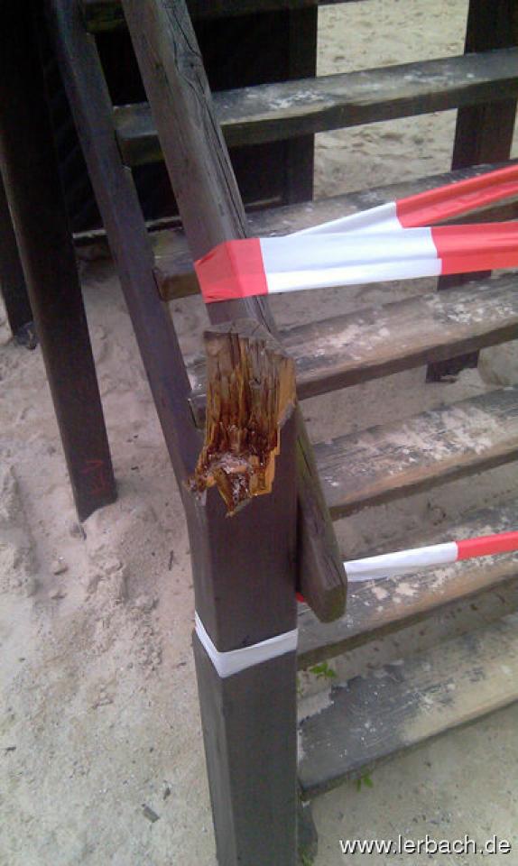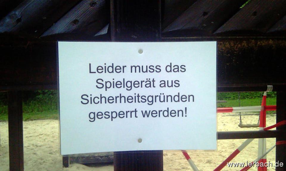 Am Rande der heutigen Sitzung zur Verwendung der frei werdenden Räume in der Lerbacher Grundschule teilte Stadtbaurat Thomas Christiansen mit, dass das große Spielgerät am Hüttenteich bei einer turnusmäßigen Überprüfung durchgefallen ist. Es wurde aus Sicherheitsgründen sofort gesperrt und soll umgehend abgebaut werden.