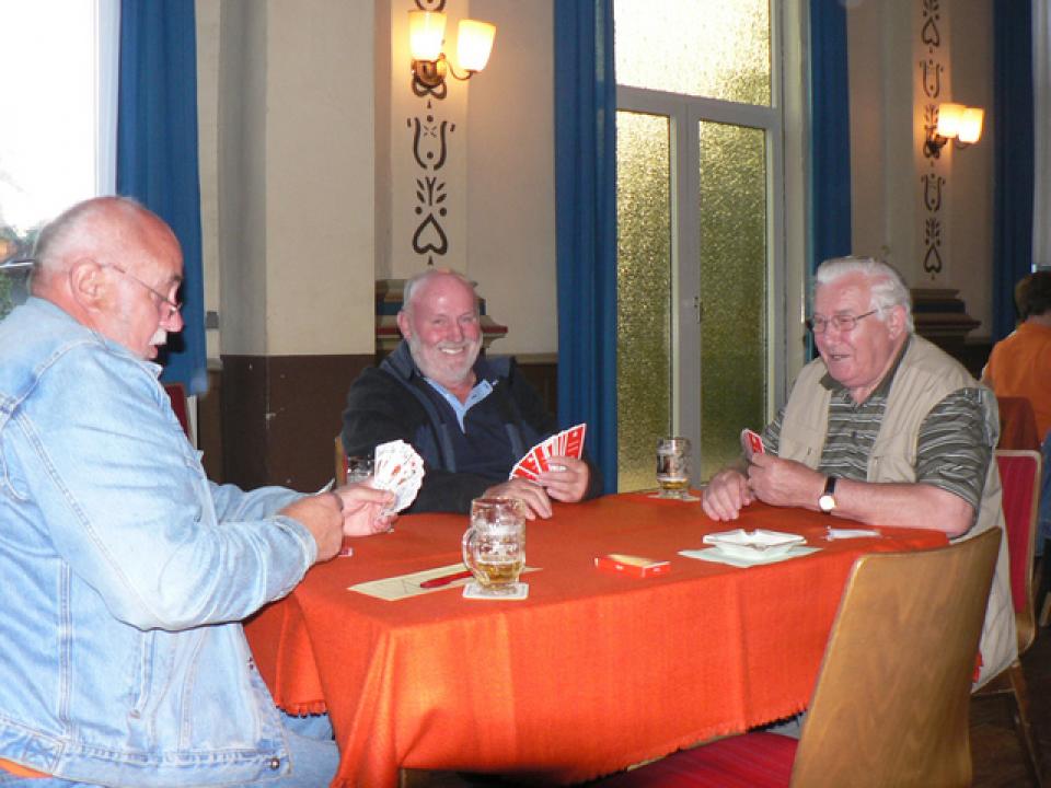 Dadurch, dass die Sitzverteilung im Sauerbreyschen Saal ausgelost wird, bietet dieser Wettbewerb die M?glichkeit, auch mal mit Lerbachern ins Gespr?ch zu kommen, die man sonst nicht so oft trifft. Entsprechend gut und locker war dann auch die Stimmung. W?hrend beim Skat trotzdem konzentriert gespielt wurde, gingen von den Knobeltischen immer wieder Jubelschreie durch den Saal, wenn ein besonders gutes W?rfelergebnis gelang.