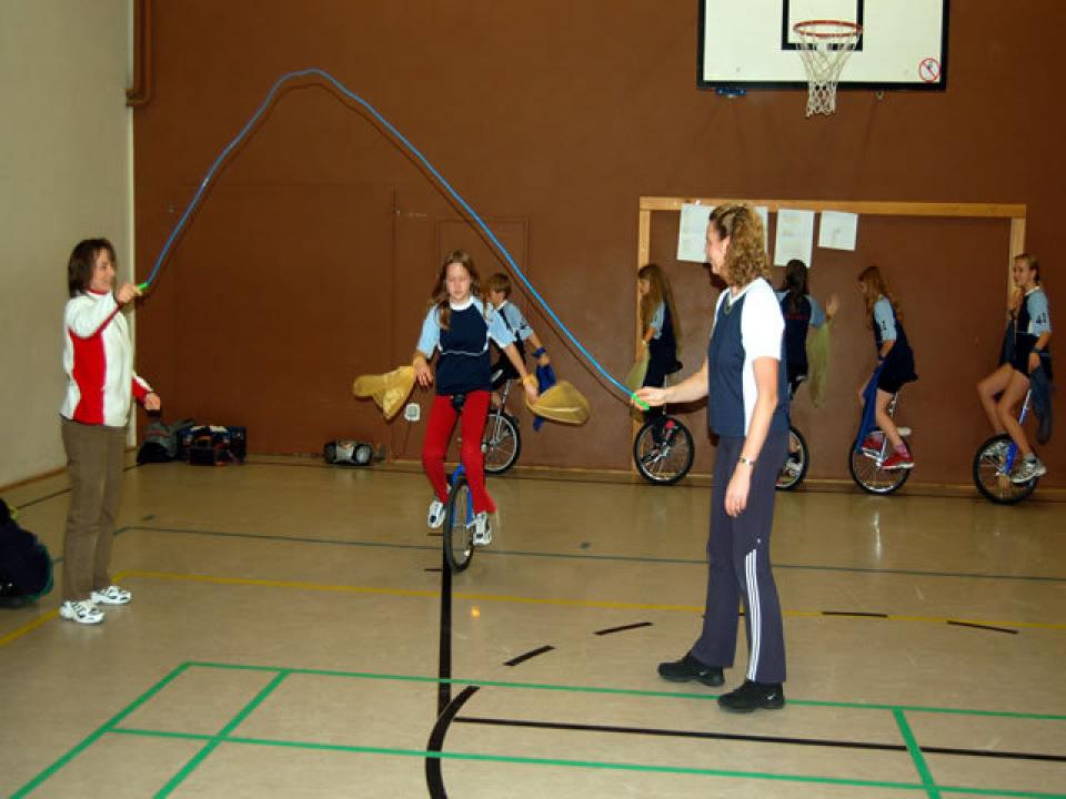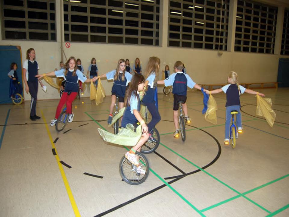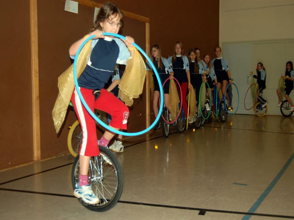 Eine besondere ?bungsstunde hatte Carmen Br?hl am Montag mit ihrer Einrad-Gruppe organisiert. Vor den Augen den Eltern konnten die jungen Einradfahrer ihr K?nnen demonstrieren. F?r die letzte ?bungsstunde in diesem Jahr trainierten die jungen MTVer besondere K?r-?bungen, die nun vorgef?hrt wurden. Die Zuschauer belohnten die gekonnten ?bungen mit viel Beifall. (Fotos: Eckhard Schmidt)