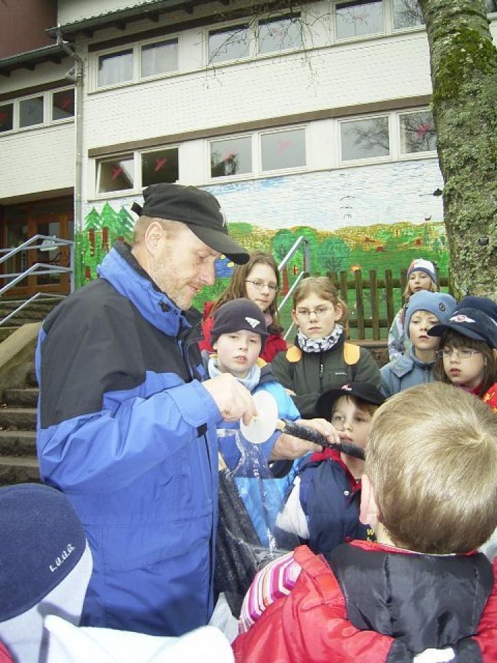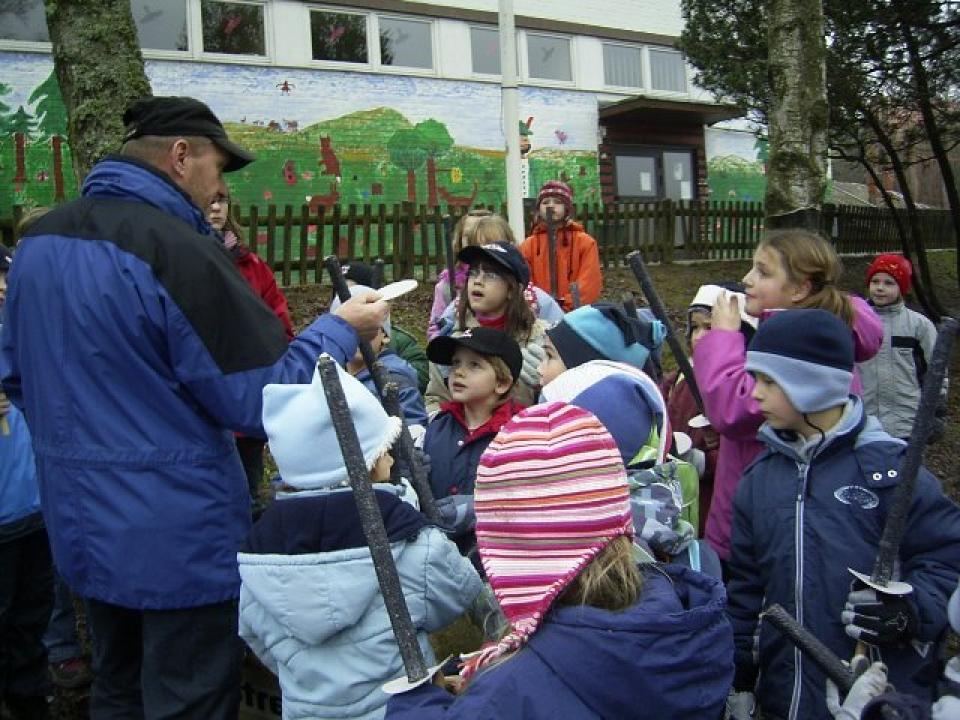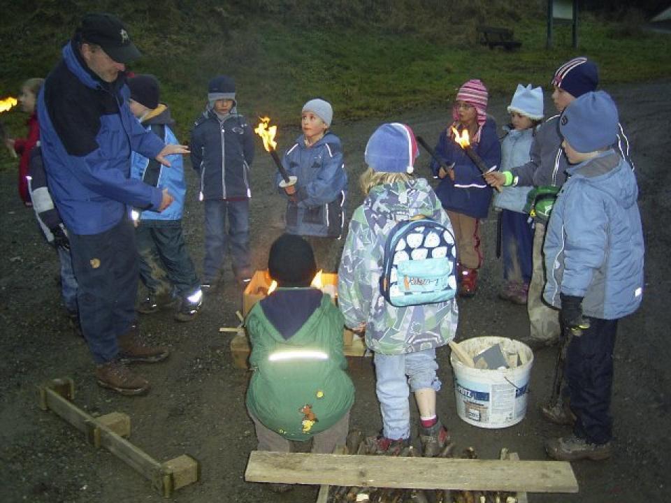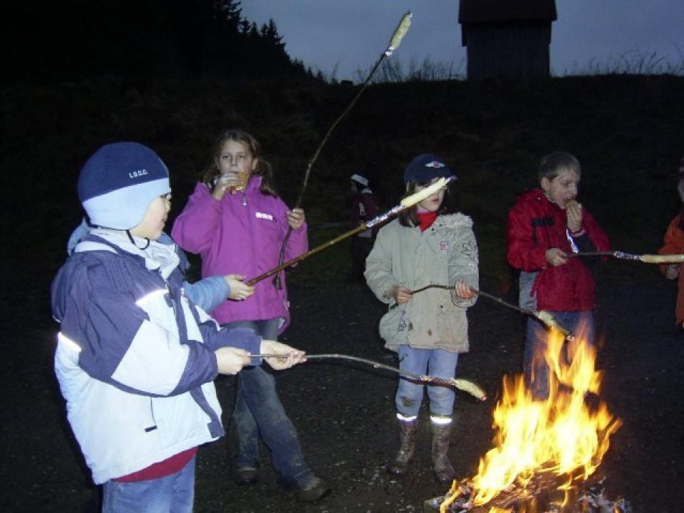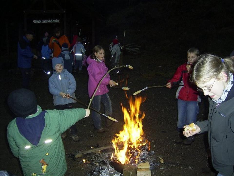 Auch die Kindergruppen von Helmut Waldmann machten am Donnerstag eine Weihnachtsfeier mit einer Wanderung von der Schule zum M?hlenteich, wo sie ?ber dem Lagerfeuer Stockbrot backten. (Fotos: Claudia Szemeitat).
