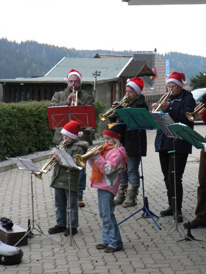 Posaunenchor mit 2 jungen NachwuchsbläsernAm vergangenen Wochenende haben Sie ihre ersten Einsatz im Posaunenchor gehabt: Annika und Ayke B?cher durften das erste Mal zusammen mit den ''Gro?en'' spielen. Vor dem Altenheim Talblick spielten Sie mit beim diesj?hrigen Kurrendebasen.