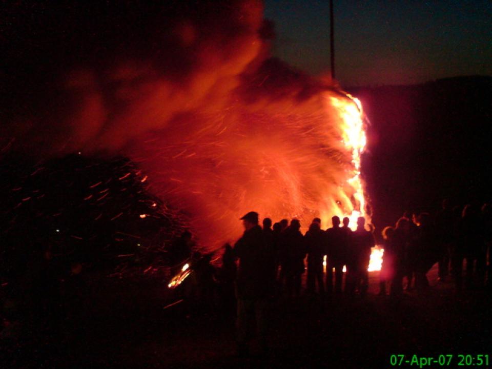 Bei wunderbaren Wetter fanden sich am Samstagabend viele Besucher auf dem „Hopfenberg“ ein. Gemeinsam mit der Osterfeuergemeinschaft konnten sie dem traditionellen Brauch des Osterfeuers frönen und mit Fackeln und Ruß beschmierten Gesichtern die Wintergeister vertreiben.