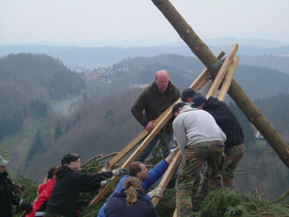 Bilder vom Aufbau und dem FeuerAuch auf dem „Hopfenberg“ in Lerbach wurde wieder ein Osterfeuer zelebriert. Nach dem der etwas anstrengende aber auch schöne Weg zum Berg hinauf gewandert war, konnten sich die Besucher an einem extra aufgestellten Pavillon mit Bratwurst und Steak sowie einem Bierchen oder diversen anderen Getränken stärken.