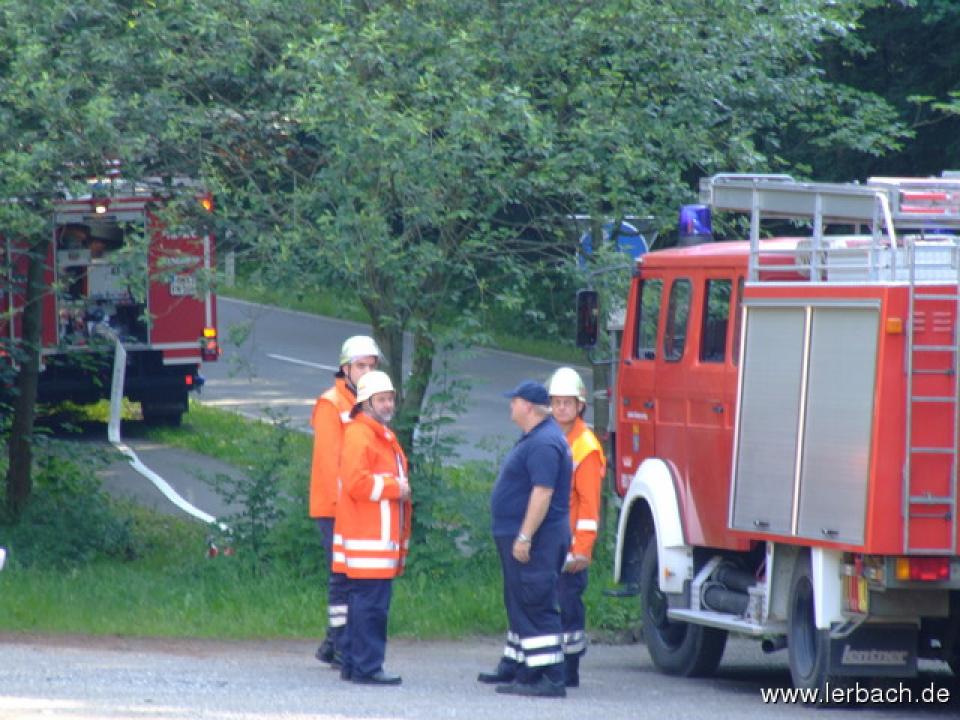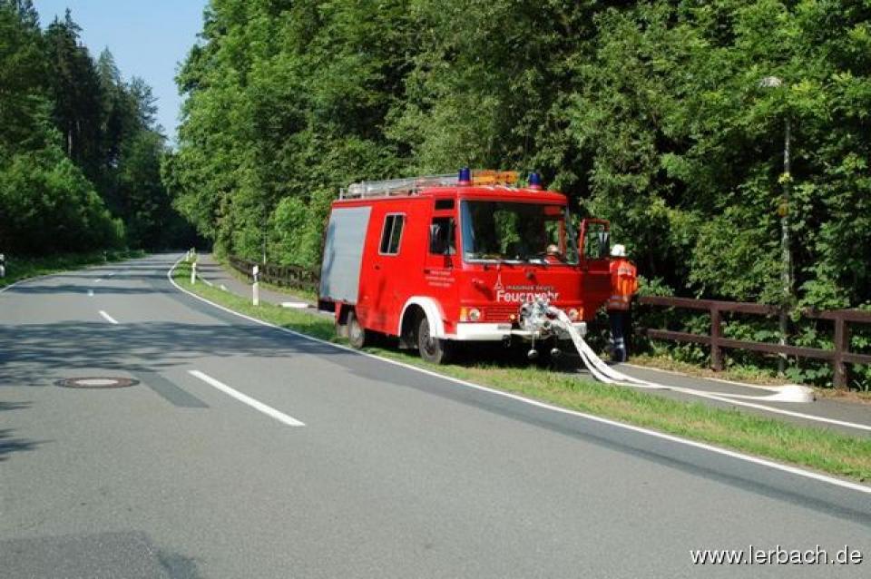 Als um 08:23 Uhr die Alarmierung per Sirene erfolgte, rückte die Lerbacher Wehr zu einem angenommenen Verkehrsunfall am Degenkopfweg aus.