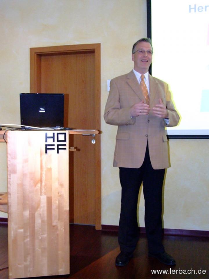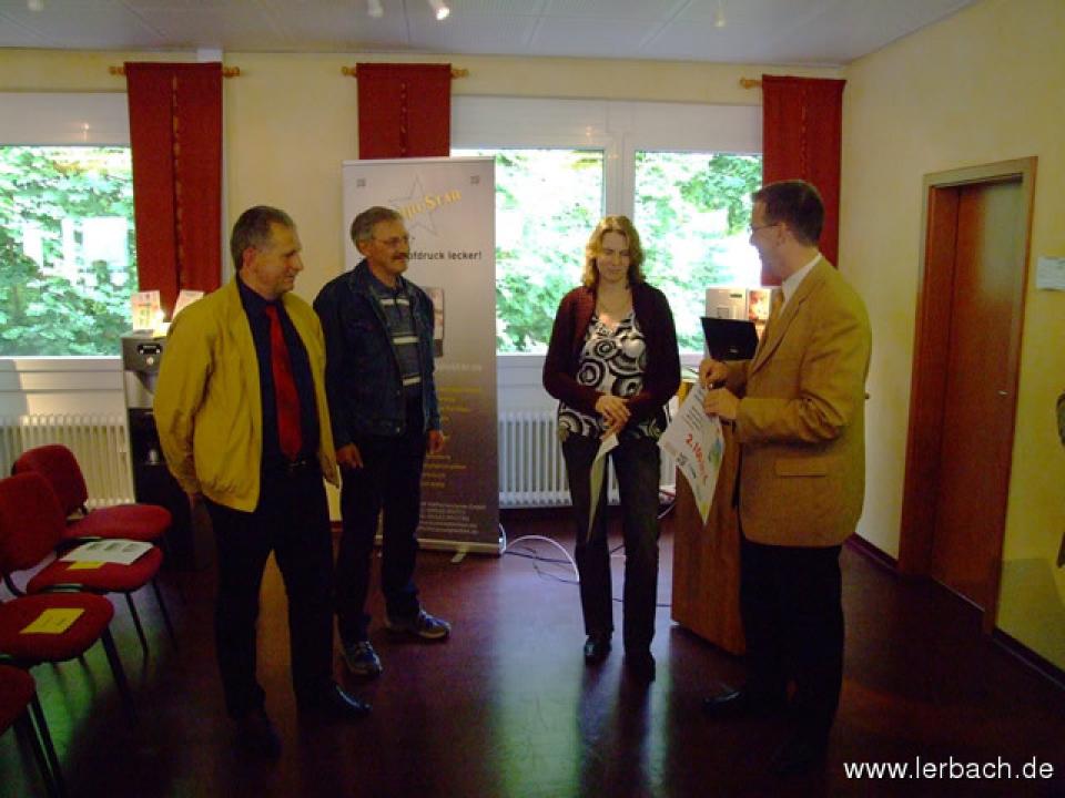 Nach dem Pressegespräch ging es an die Verteilung des Erlöses von insgesamt 5.600.- € an die Lerbacher Vereine. In seiner Begrüßung hob Martin Hoff den Imagegewinn und die Steigerung des Bekanntheitsgrades von Lerbach hervor. Auch durch die Arbeit der Firmen werde der Name des Ortes weit hinaus getragen und genieße einen hervorragenden Ruf.