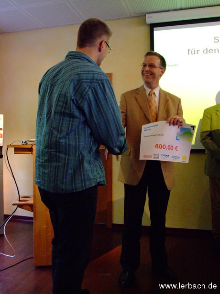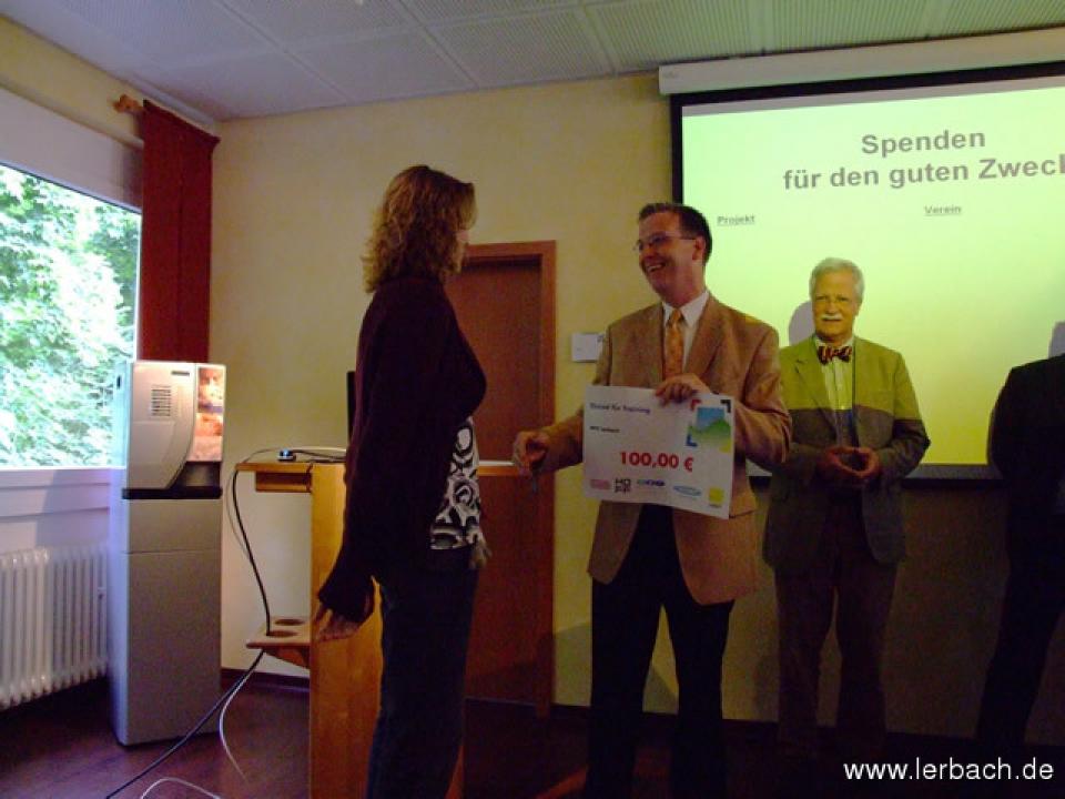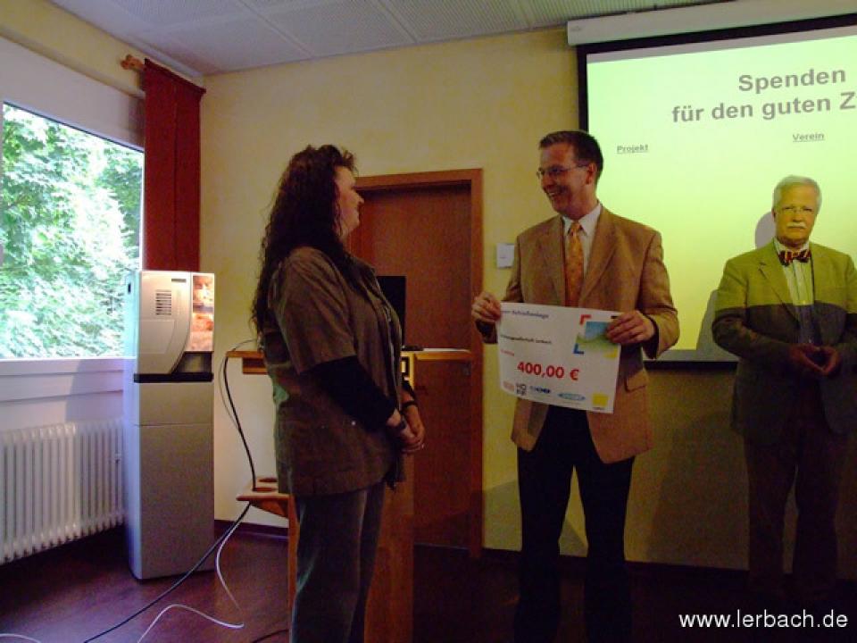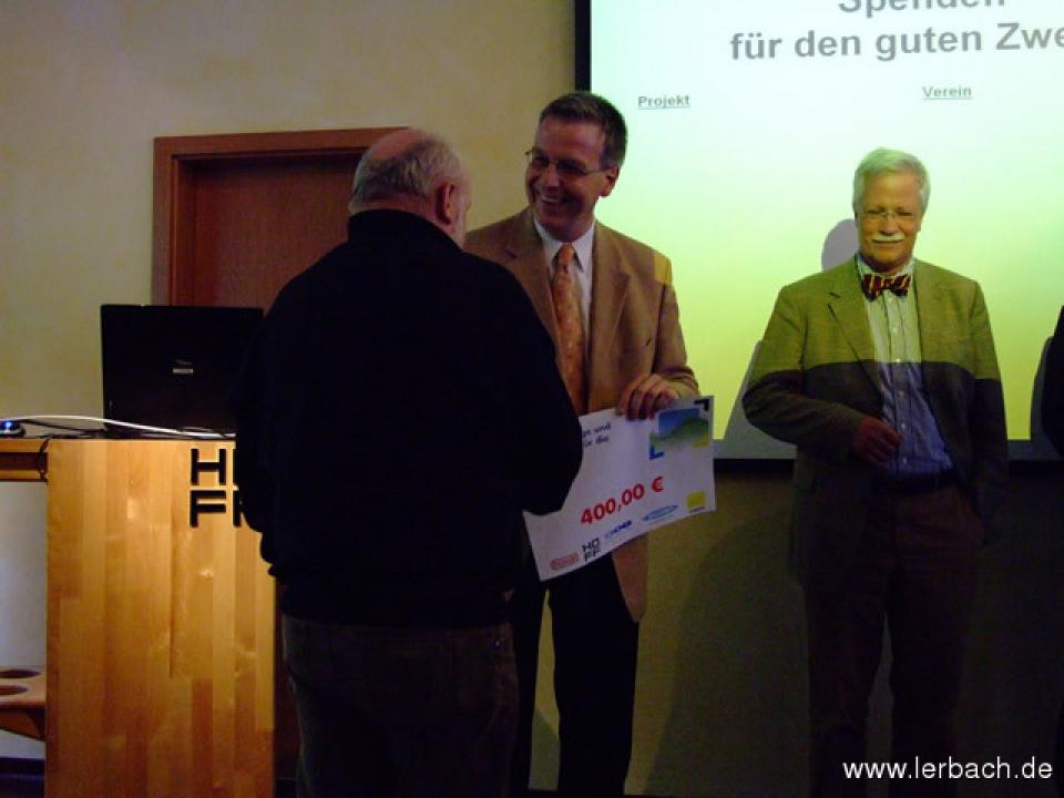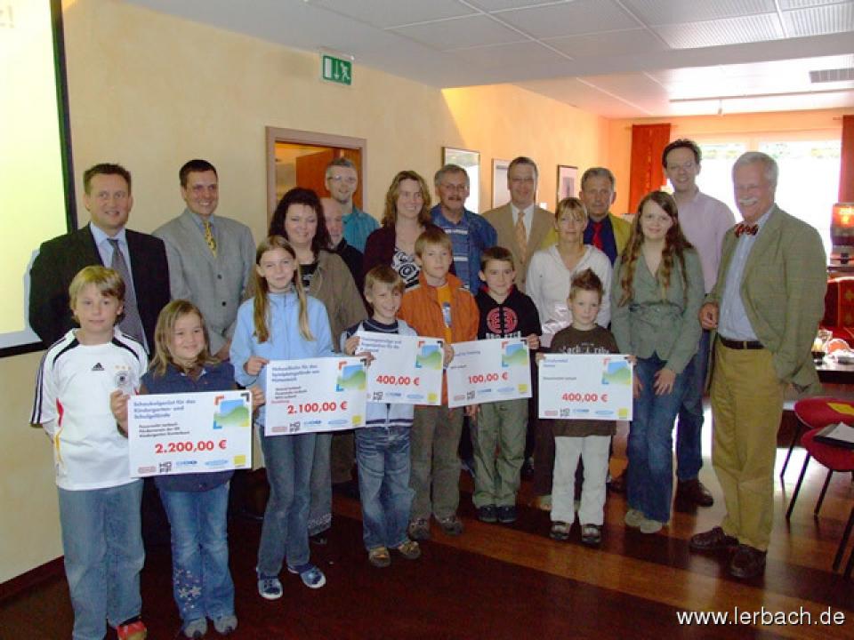 Den krönenden Abschluss der Veranstaltung bildete dann die Verteilung der symbolischen Schecks an die Lerbacher Vereine. Da die von den Vereinen eingereichte Wunschliste insgesamt über 25.000 € teuer war, hatten es die vier Firmen schwer, eine Auswahl zu treffen. Allerdings wurden einige Wünsche mehrfach genannt, sodass es am Ende möglich war, dass jeder Verein etwas aus dem Topf bekam. Hierbei wurde besonders auf die langfristige und nachhaltige Verwendbarkeit der Neuanschaffungen Wert gelegt.
