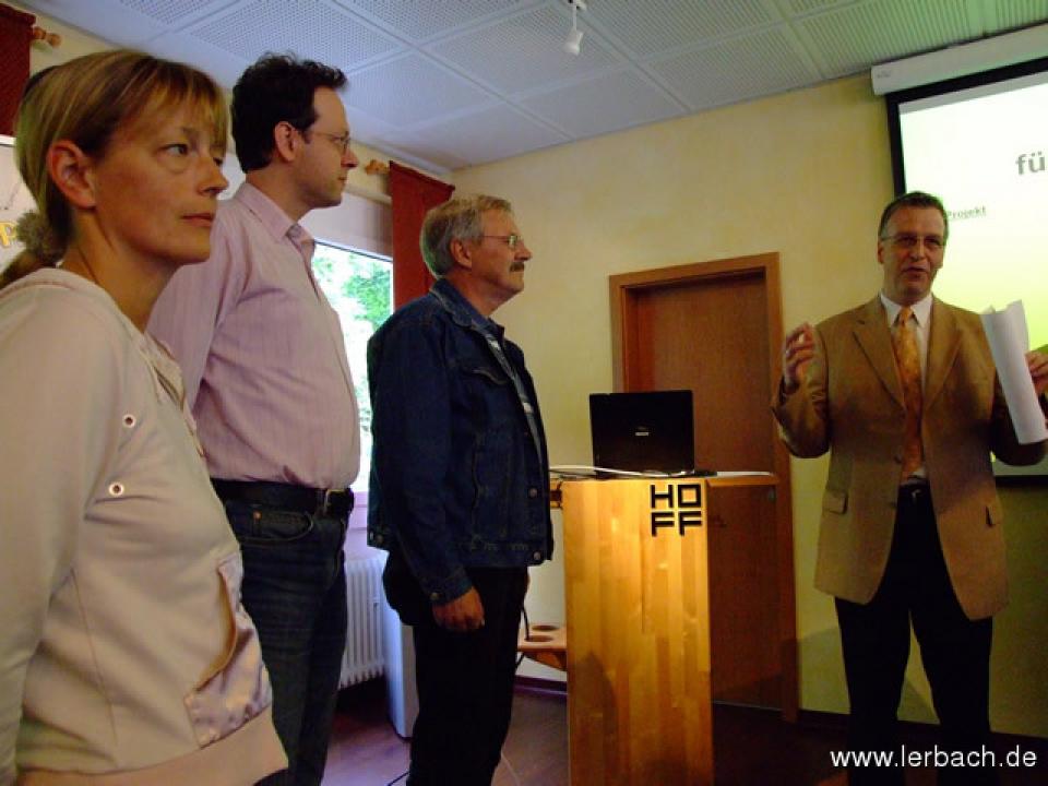 Klaus Becker nutzte die Gelegenheit auch noch, um zu einem ganz anderen Thema Stellung zu nehmen: die Lerbacher Grundschule. Er nannte die Gerüchte um eine bevorstehende Schließung wörtlich "Blödsinn" und den Bestand der Schule für die nächsten Jahre gesichert. Allerdings müsse man tätig werden, wenn die Schülerzahlen soweit absinken, dass Klassenstufen zusammengelegt werden müssten. Das ist aber vor dem Schuljahr 2010/11 nicht der Fall (soweit liegen derzeit die Prognosen zur Entwicklung der Schülerzahlen vor). Zur Zeit gibt es personelle Veränderungen durch den Ruhestand von Schulleiter Bernd und den plötzlichen Tod der Hausmeisterin. Für beide sind allerdings bereits Nachfolger gefunden worden.