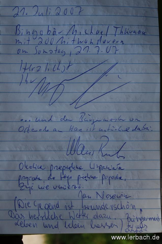 Eine längere Rast legte die Gruppe am Mariensblick oberhalb des Lerbacher Skihangs ein. Dort spielte zum einen die Brauchtumsgruppe des Harzklubs und zum anderen stieß der bekannte NDR-Moderator Michael Thürnau zusammen mit Osterodes Bürgermeister Klaus Becker und einer Delegation aus Ostróda mit deren Bürgermeister Jan Nosewicz dazu.