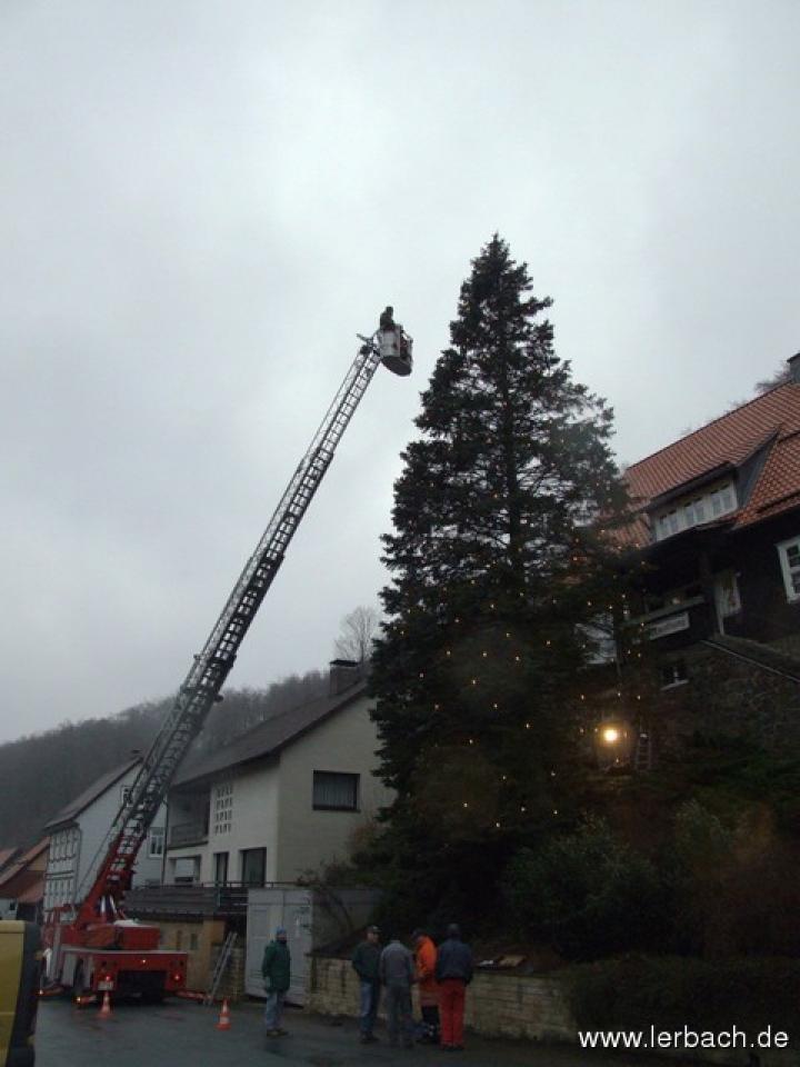 Zweiter Versuch hat geklapptIm zweiten Versuch hat am Freitag das Schmücken der Fichte vor der ehemaligen Kurverwaltung geklappt. Der erste Versuch musste eine Woche zuvor wegen eines Hydraulikschadens an der Drehleiter der Osteroder Feuerwehr abgebrochen werden.