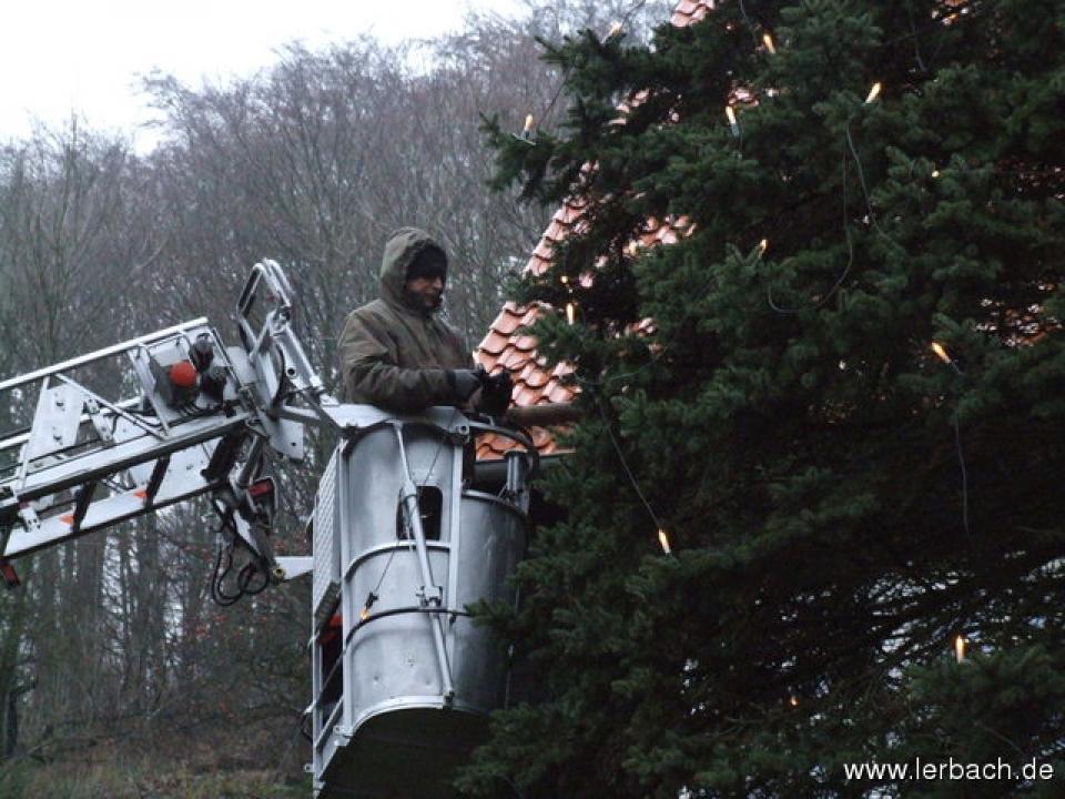 Jetzt hat das Team des Ortsrates um Ortsbürgermeister Frank Koch die Lichterketten erfolgreich angebracht, so dass der Weihnachtsbaum wieder in alter Pracht erstrahlt und einer der schönsten und größten des Landkreises ist.