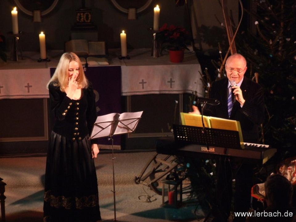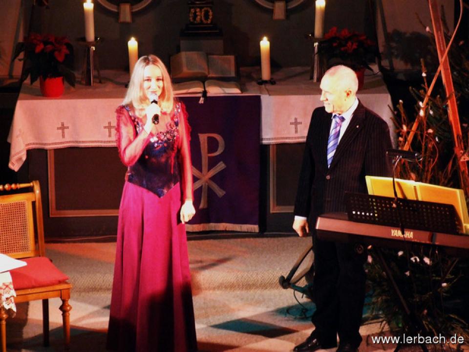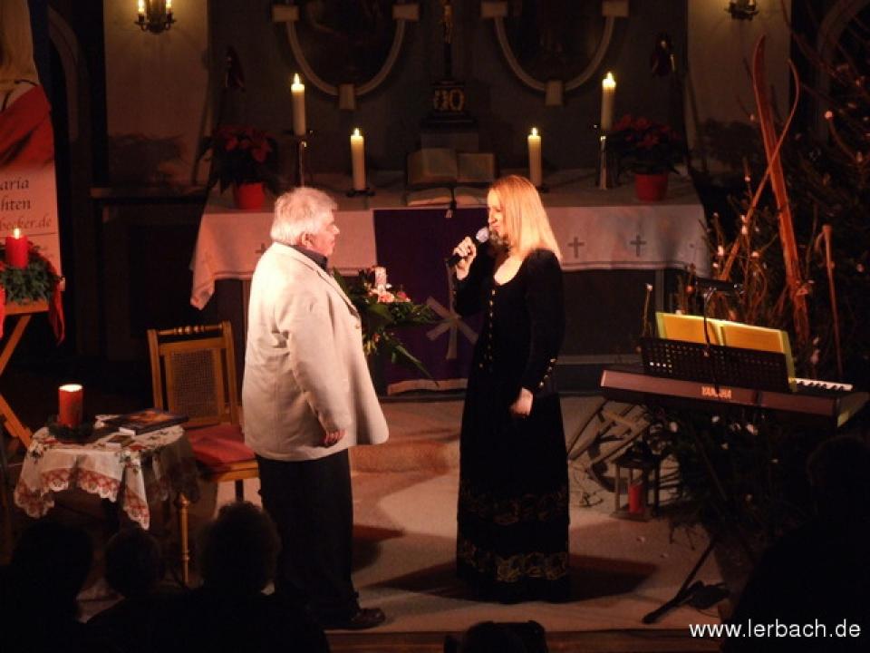 Danach folgte der Auftritt von Astrid Harzbecker, die nur mit ihrem Ehemann Hans-Jürgen Schmidt und einem Tontechniker nach Lerbach gekommen war und es schaffte, den Kirchenraum mit einem Minimum an Technik auszufüllen. Neben klassischen Weihnachtsliedern aus Deutschland, Russland und Frankreich erklangen auch viele beliebte volkstümliche Schlager, die das Publikum zum Klatschen und innerlichen Mitsingen animierten.