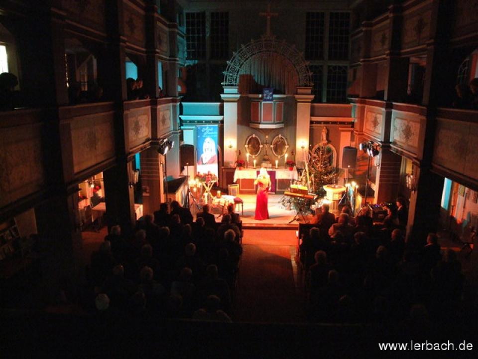 Konzert in der Lerbacher KircheKnapp 150 Besucher sorgten am Samstagnachmittag für eine gut gefüllte Kirche, um die aus Funk und Fernsehen bekannte Astrid Harzbecker zu sehen. Der Kirchenvorstand hatte die Sängerin nach Lerbach geholt und der Förderverein unterstützte die Aktion mit einem Glühweinverkauf zugunsten der Sanierung der Kirche. Die war stimmungsvoll weihnachtlich geschmückt, als zunächst Pastor Bernd Menzel die Besucher begrüßte und ein kurzes Gebet sprach.
