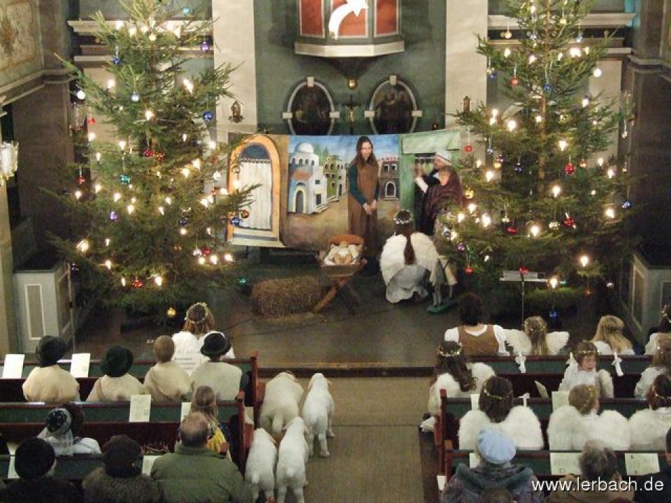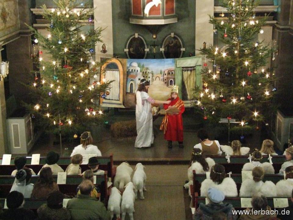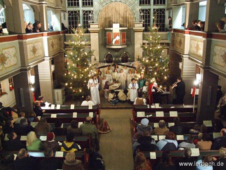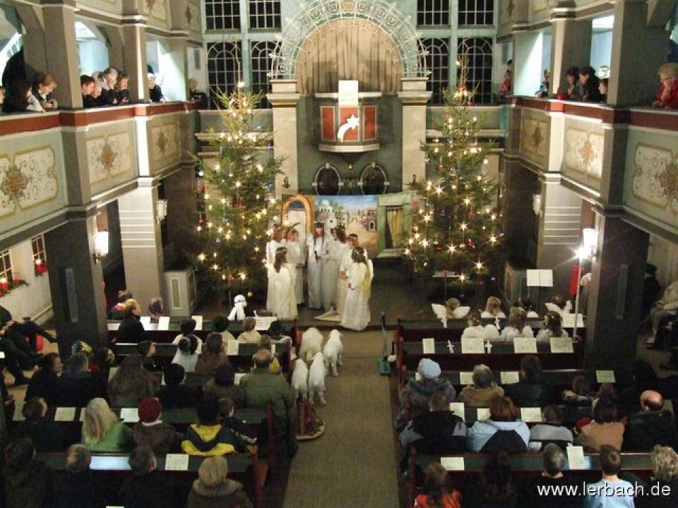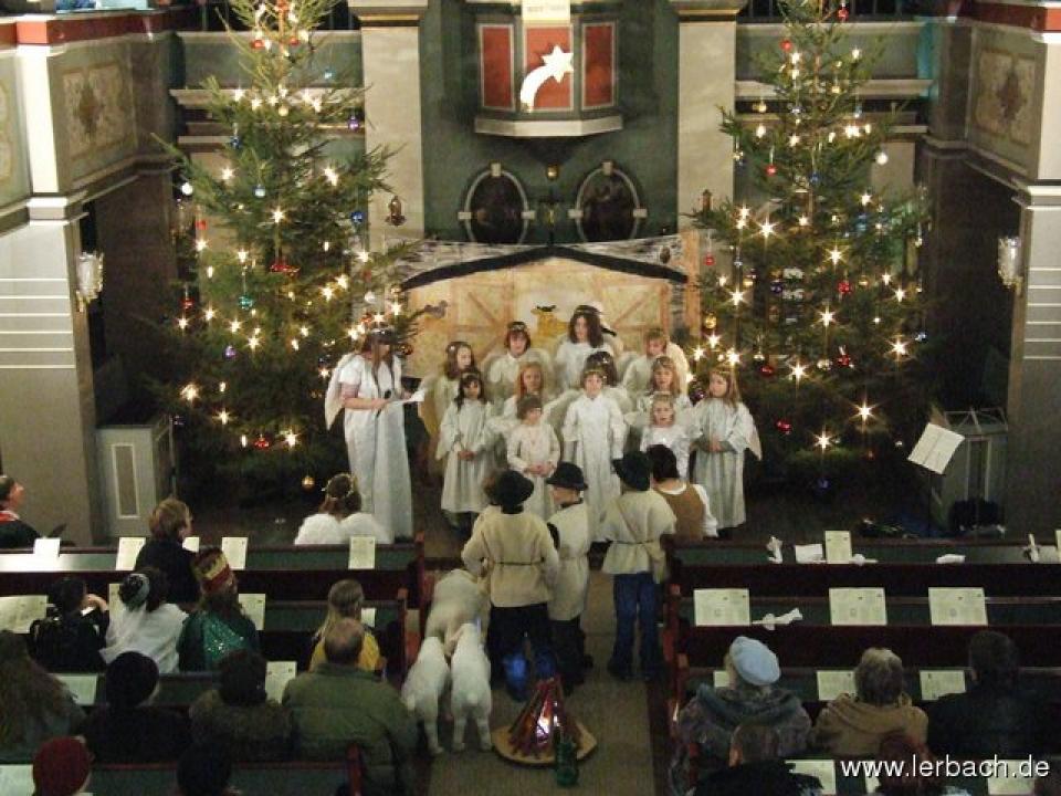 Viele Mitwirkende, viele Zuschauer im GottesdienstDer 17-Uhr-Gottesdienst am heiligen Abend ist in Lerbach traditionell dem Krippenspiel vorbehalten. Begleitet vom Posaunenchor und seinem Leiter Andreas Bücher an der Orgel wurde der Gottesdienst von Frau Menzel gehalten.