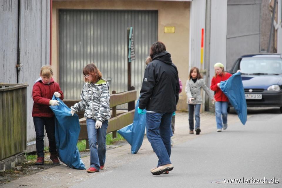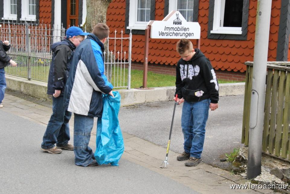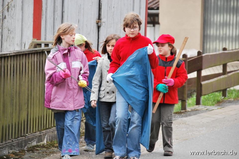 Nachgeholte Aktion im Rahmen des PutztagesIn mehreren Gruppen zogen die Lerbacher Grundschüler am Dienstag durchs Dorf und säuberten die Friedrich-Ebert-Straße.
