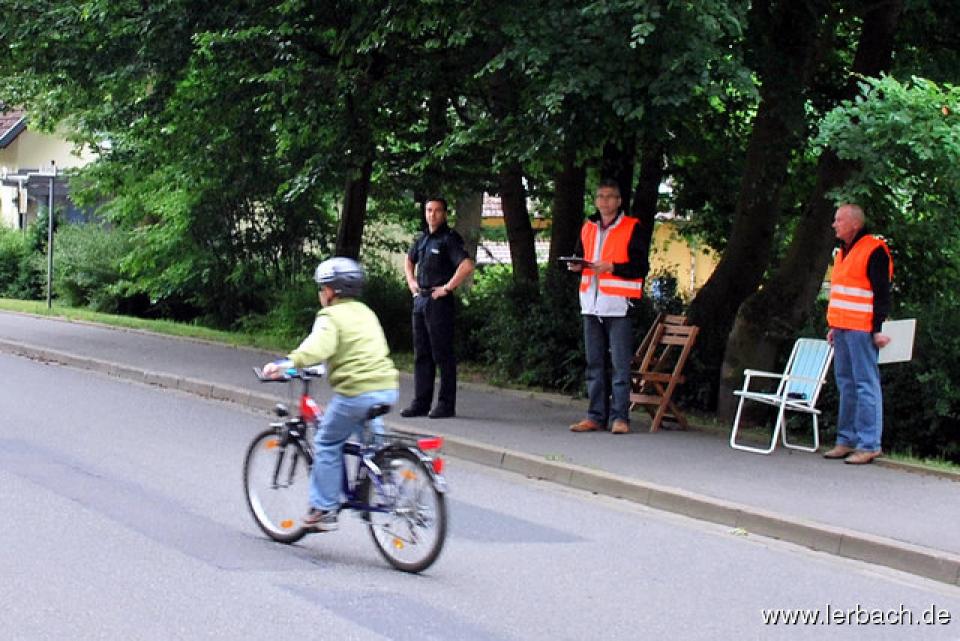 Radfahrwoche am SchwarzenbergSchon seit Montag üben die Lerbacher Grundschüler das richtige Verhalten mit dem Fahrrad im Straßenverkehr. Unterstützt von der Polizei wurden die Fahrräder überprüft und Verkehrsregeln gelernt.
