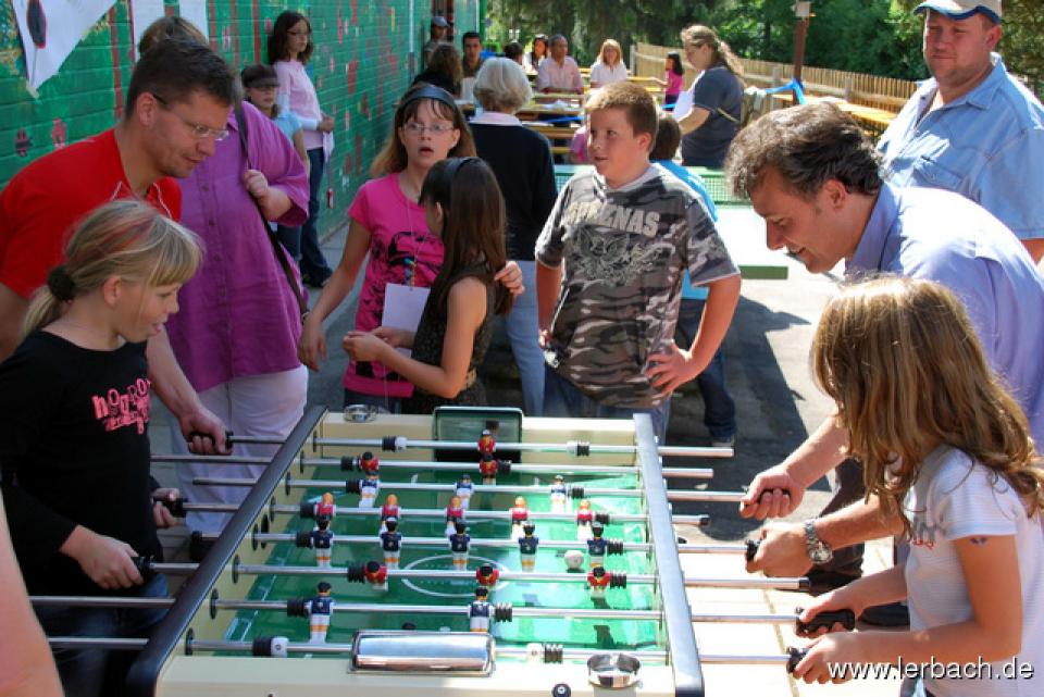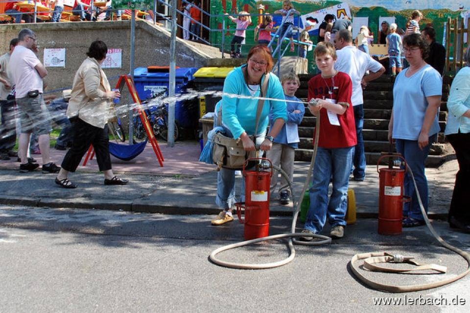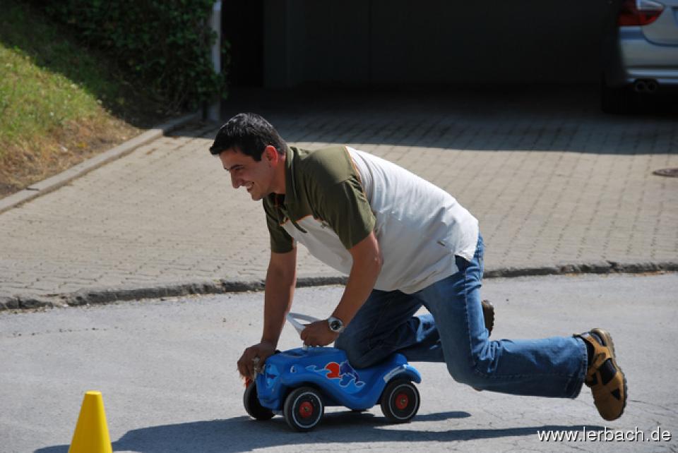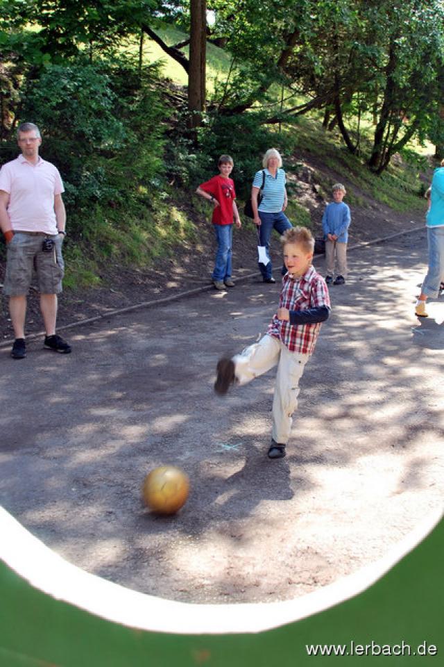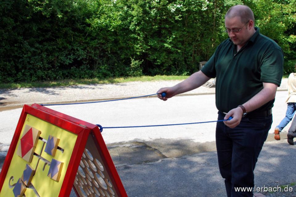 Spielparcours für Kinder und ErwachseneDer Termin passte gut: das letzte Ende des Schwarzenberges war ohnehin die ganze Woche wegen der Verkehrserziehung gesperrt und so machte den Kohl auch nicht fett, diese Sperrung noch einen Tag aufrecht zu erhalten und ein Sommerfest zu feiern. Das Wetter machte auch mit und viele Eltern nutzten die Gelegenheit für einen Samstagnachmittag gemeinsam mit ihren Kindern.