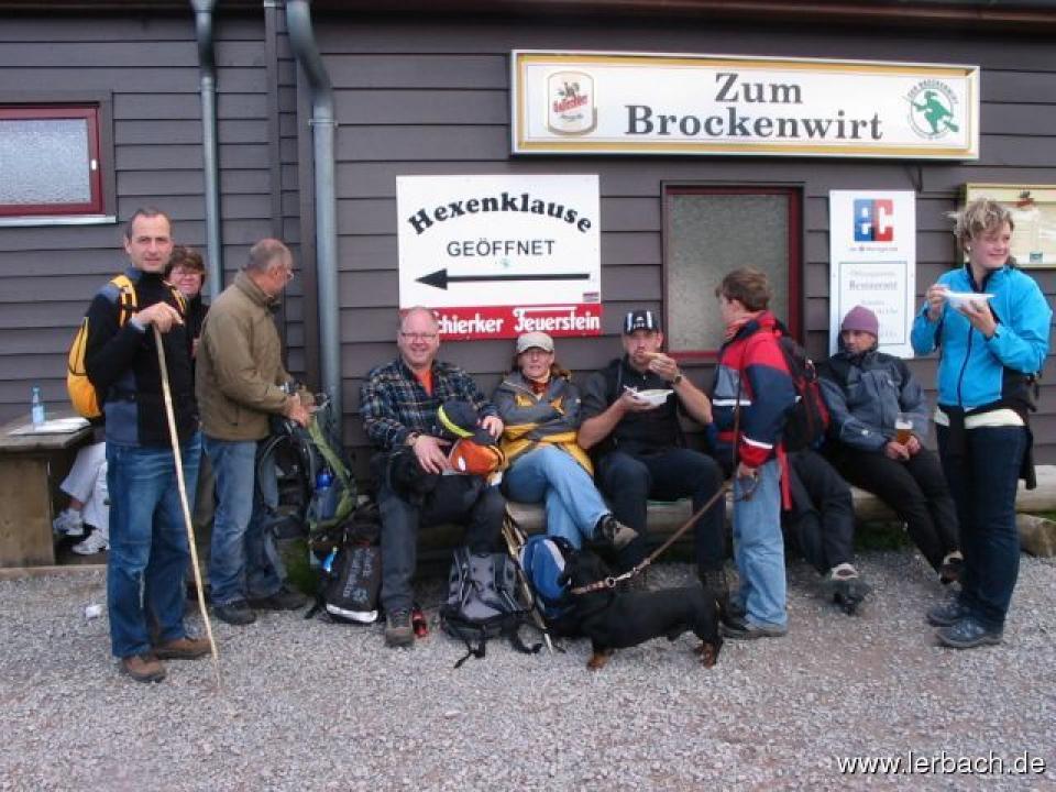 Frühaufsteher konnten in der Morgendämmerung, nach dem Prasseln des Regens in der Nacht, die ersten erregten Brunftschreie der Harzhirsche aus nächster Nähe hören. Nach einem ausgiebigen Frühstück und bei strahlendblauen Himmel folgte die 2. Etappe der Hexen-Stieg-Wanderung, der Marsch zum Brocken. Ein wunderschöner Weg über Stock und Stein folgte nun entlang der Steilen Wand bis hoch zum Torfhaus. Dort angekommen ging es über den Goetheweg durch das Brockenmoor direkt auf den Gipfel des höchsten Berges Norddeutschlands. Super Sicht, kalter Wind, Erbsensuppe aus der Gulaschkanone und die verdienten Pommes ließen die stärker gewordenen Schmerzen in den Beinen vergessen.