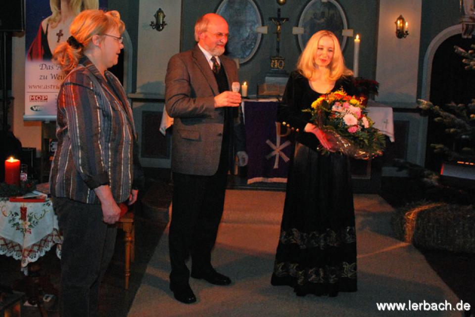 Danach folgte der Auftritt von Astrid Harzbecker, die nur mit ihrem Ehemann Hans-Jürgen Schmidt und einem Tontechniker nach Lerbach gekommen war. Neben klassischen Weihnachtsliedern aus Deutschland, Russland und Frankreich erklangen auch viele beliebte volkstümliche Schlager, die das Publikum zum Klatschen und innerlichen Mitsingen animierten. Dabei wurde Astrid Harzbecker immer wieder von ihrem Ehemann Hans-Jürgen Schmidt am Keyboard begleitet.