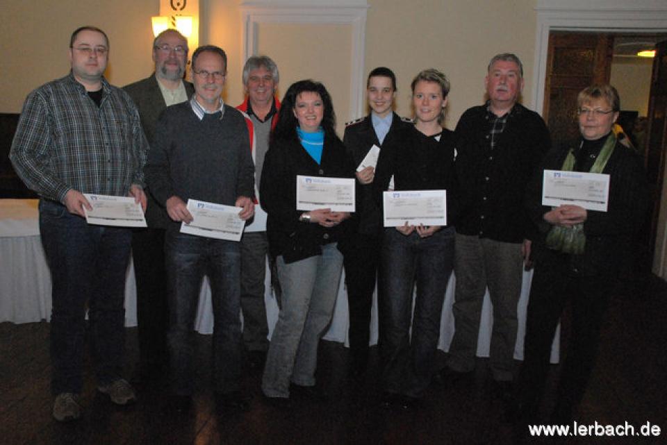 Aus Lerbach wurden der Förderverein der Lerbacher Kirche, der Kindergarten Kunterbunt, der MTV, der HSCL, die Schützengesellschaft, die freiwillige Feuerwehr, der Förderverein der Grundschule, die Heimatstube und die SPD-Abteilung bedacht.