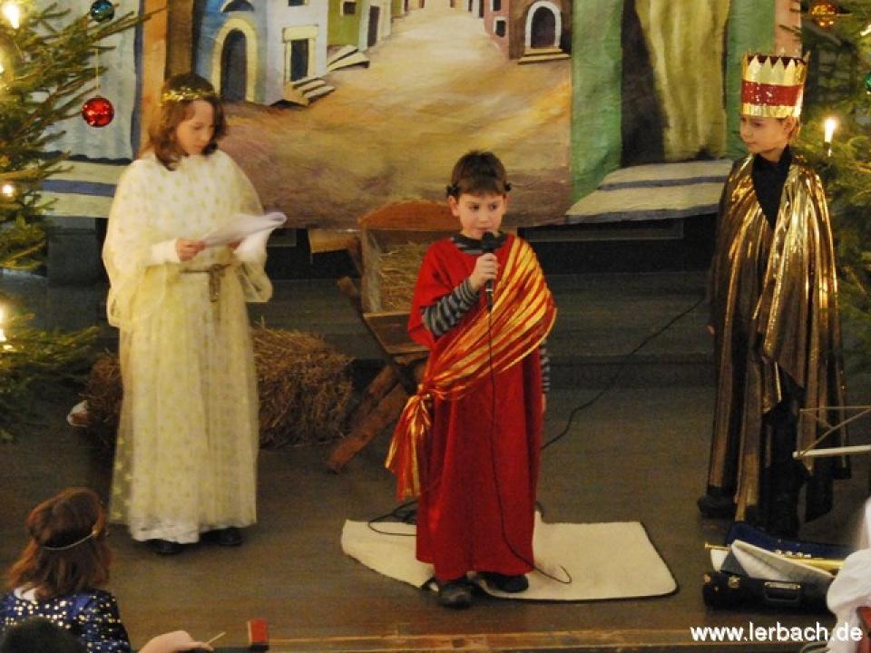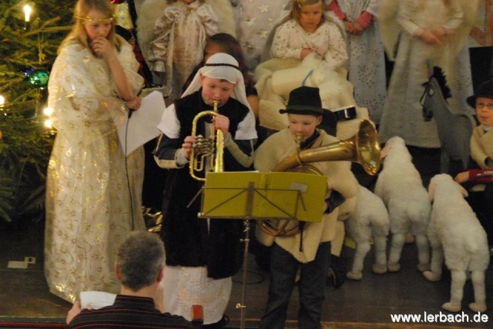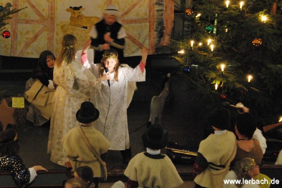 Traditionell wird beim 17:00-Uhr-Gottesdienst am heiligen Abend das Krippenspiel aufgeführt, das Lerbacher Kinder unter der Leitung von Gisela Scheerschmidt einstudiert haben.