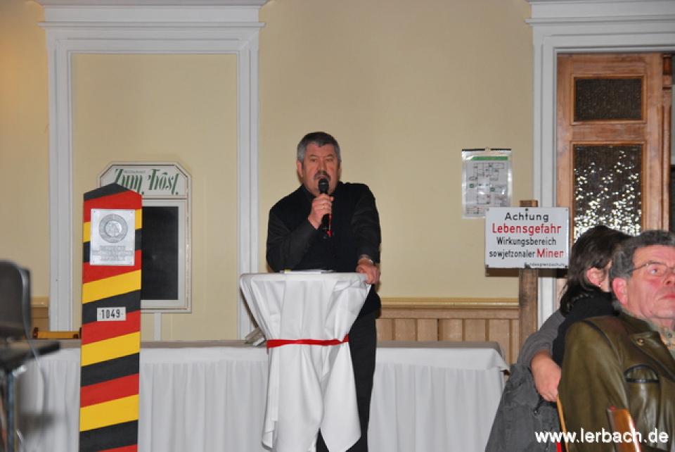 Nach der Versammlung hielt der ehemalige Zollgrenzdienstbeamte Rudolf Zietz aus Herzberg einen Vortrag zum Thema "Wider das Vergessen an der Zonengrenze DDR/BRD", in dem er aus seiner Dienstzeit an der innerdeutschen Grenze berichtete. Im Anschluss daran zeigte er - ein wenig mit der Technik kämpfend - Bilder aus seinem Archiv, die die Geschehnisse, die bis vor 20 Jahren Alltag im geteilten Harz waren, wieder lebendig werden ließen.