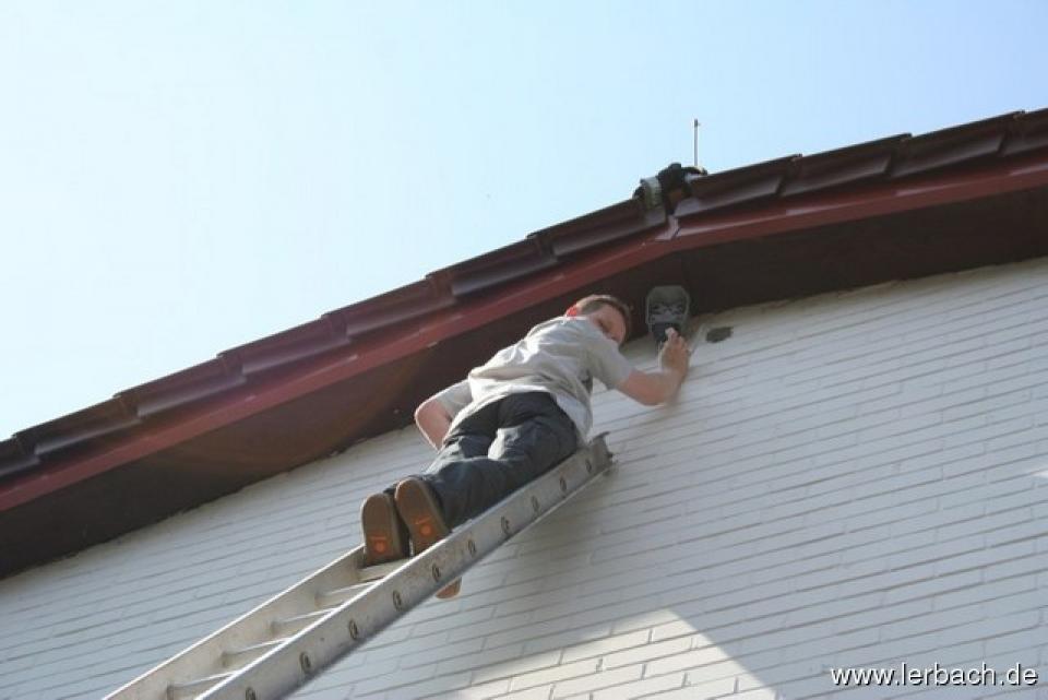 Zunächst war ein mutiger Einsatz in luftiger Höhe gefragt, um die Objektive zu putzen. Die Hoffnung, dadurch die Bildqualität wieder zu steigern, hat sich allerdings nicht so recht erfüllt.