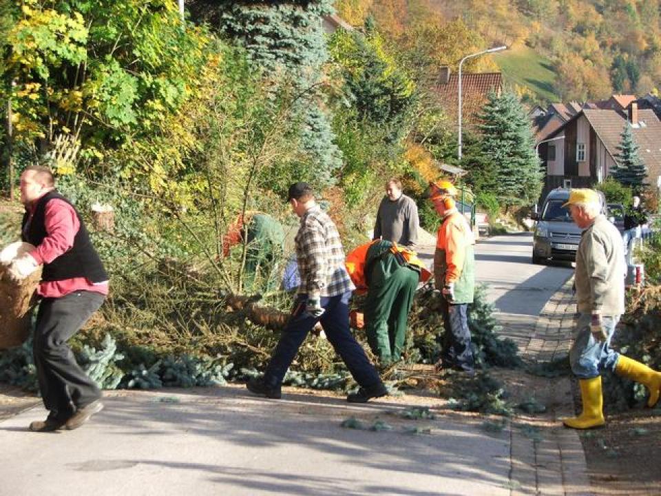 Baumfällaktion am LiethwegGemeinsam geht was! Das haben heute die Anwohner des Liethwegs zusammen mit weiteren freiwilligen Helfern bewiesen. Initiiert von Ortsbürgermeister Frank Koch und unterstützt von fachkundigen Forstwirten wurde das Gebüsch (das mittlerweile schon fast in einen jungen Laubwald überzugehen drohte) oberhalb des Liethweges heruntergeschnitten und geschreddert.