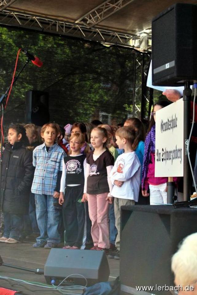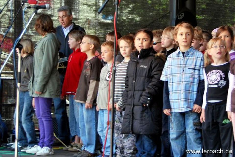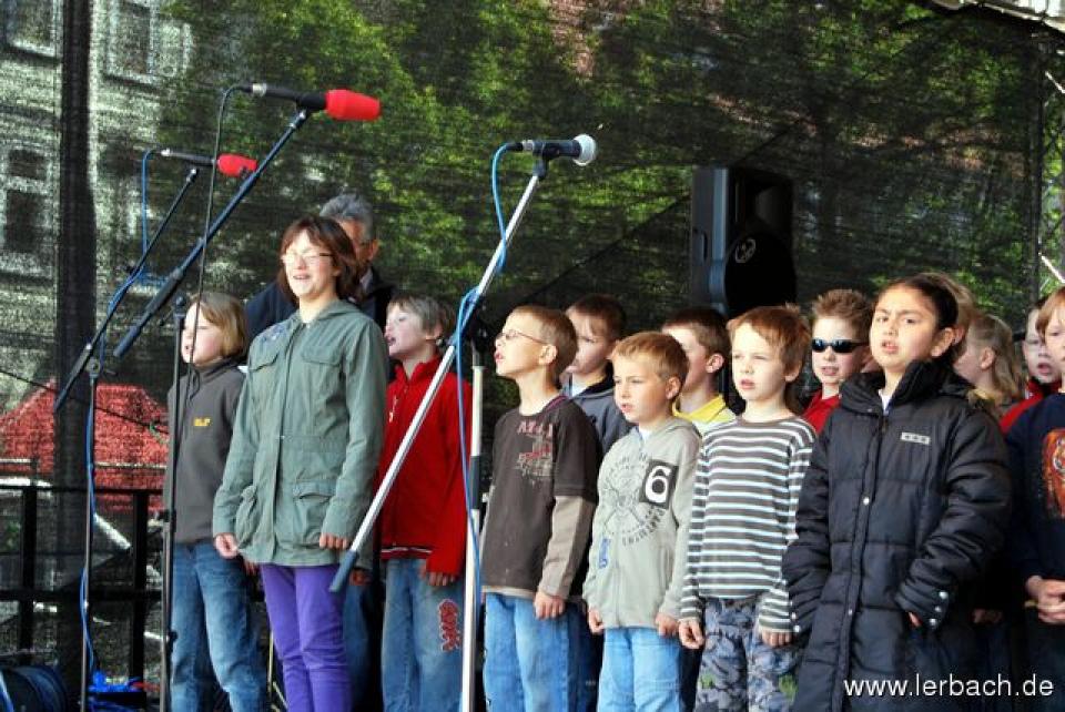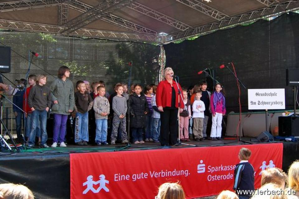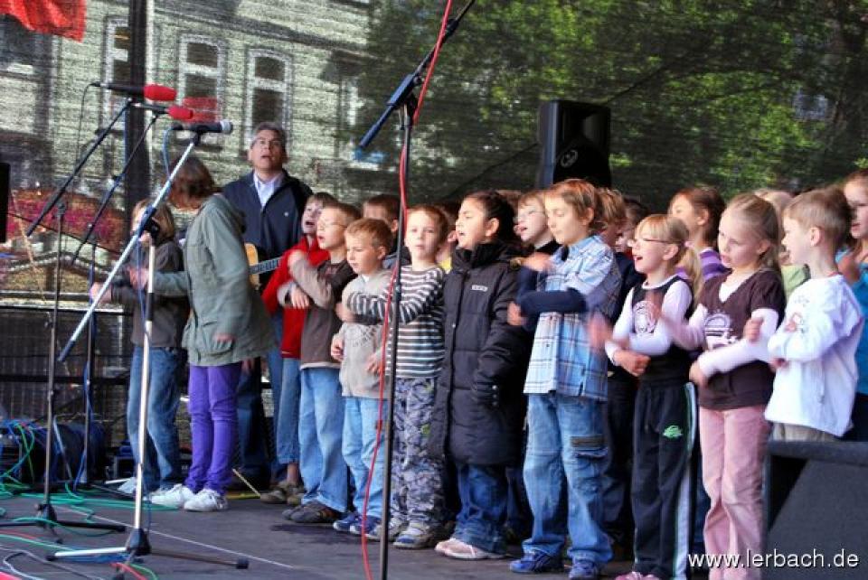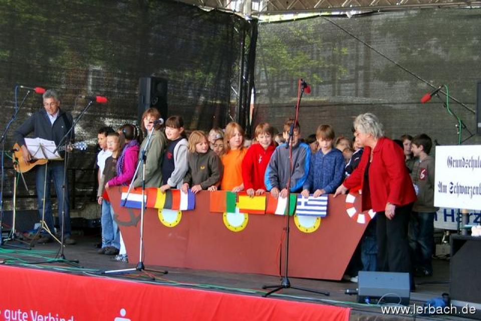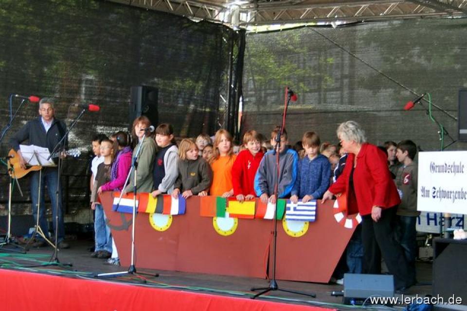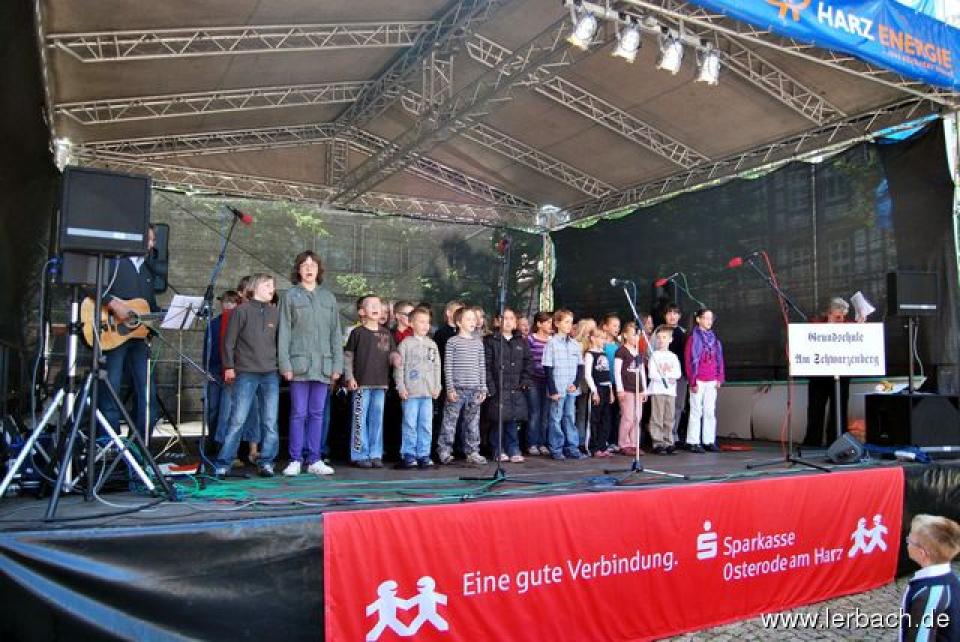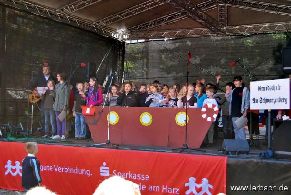 Halbstündiges Programm kam toll anAm späten Samstagvormittag hatten die Kinder der Grundschule am Schwarzenberg mit ihrer Schulleiterin Frau Höchstädter und ihrem Lehrer Herrn Rohde einen großen Auftritt auf der Hauptbühne auf dem Kornmarkt.