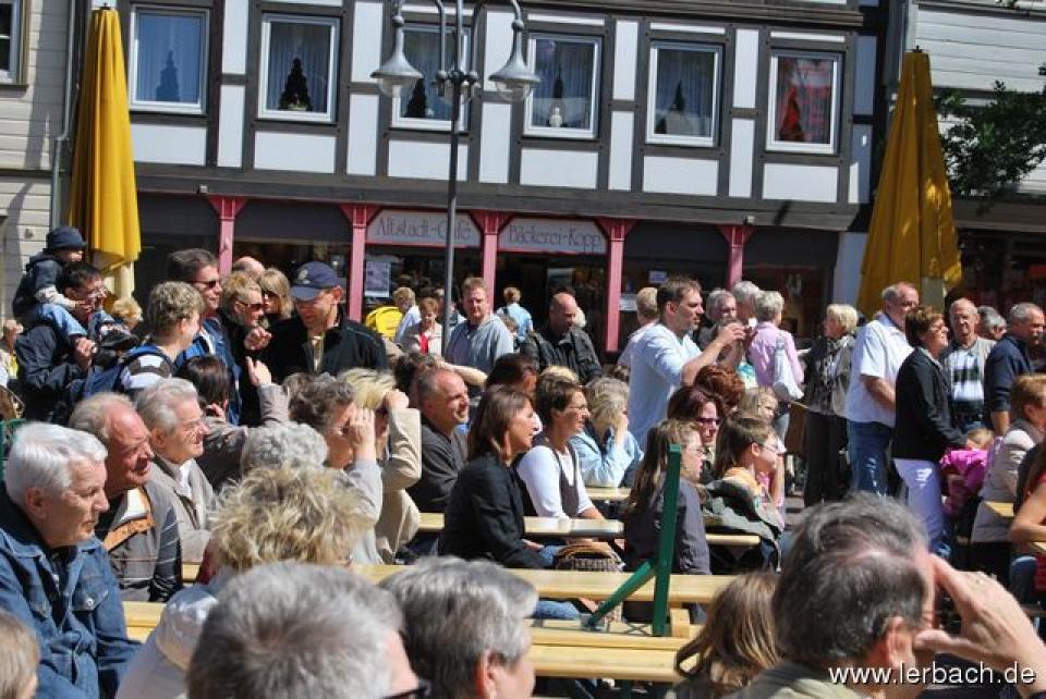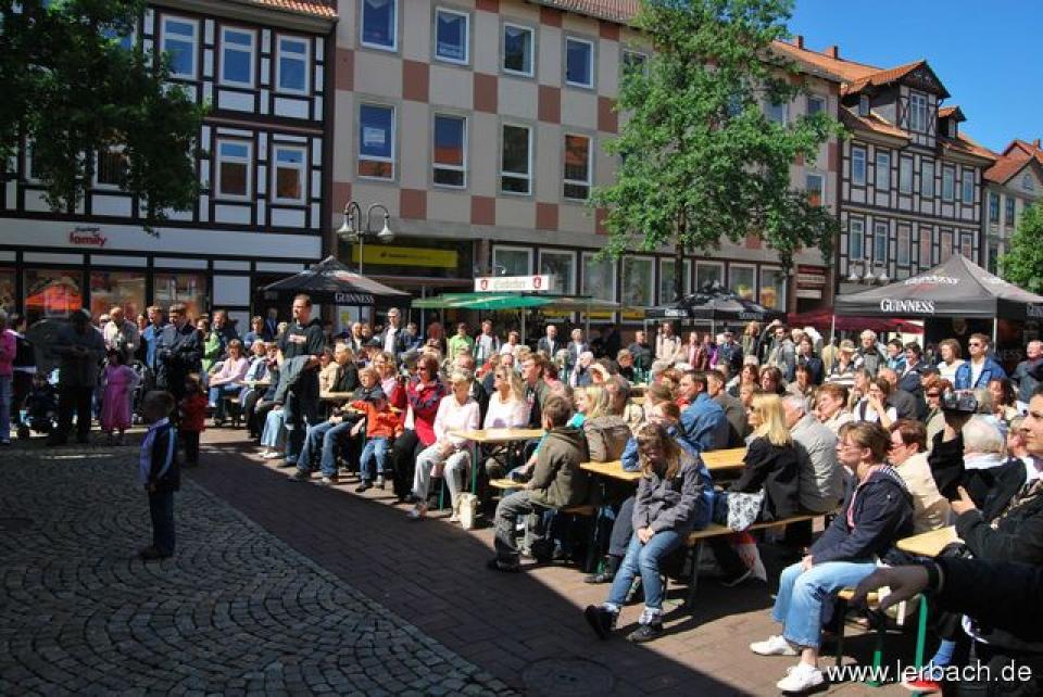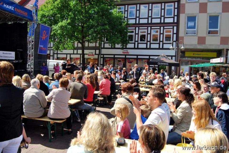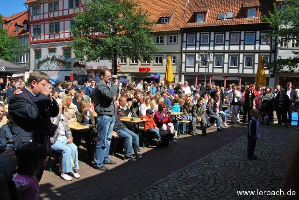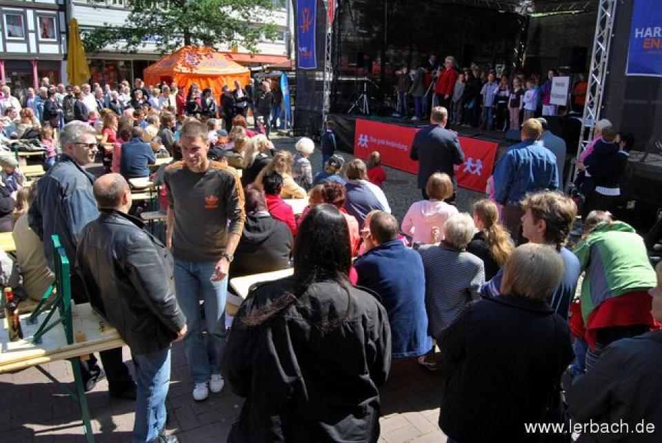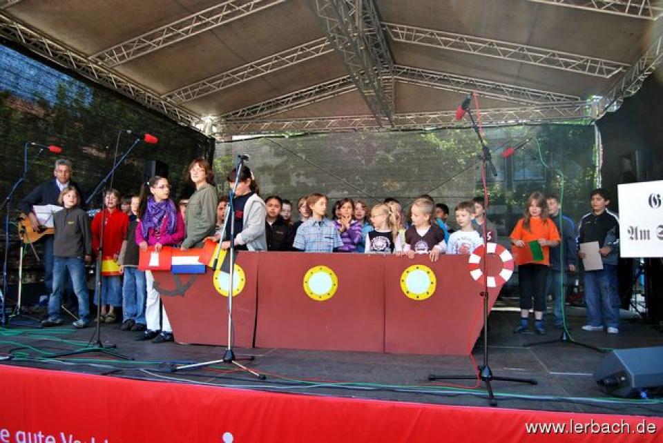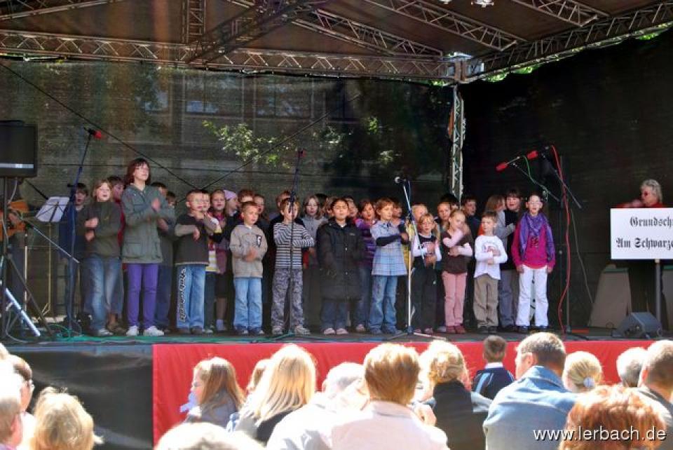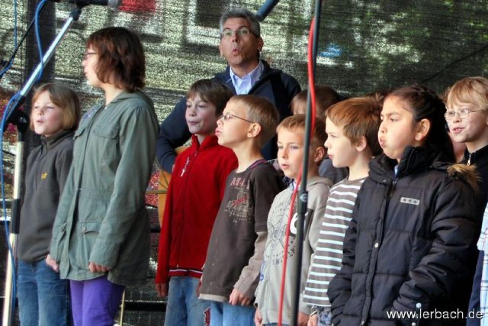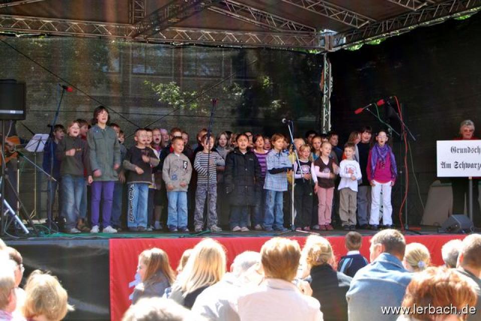 Halbstündiges Programm kam toll anAm späten Samstagvormittag hatten die Kinder der Grundschule am Schwarzenberg mit ihrer Schulleiterin Frau Höchstädter und ihrem Lehrer Herrn Rohde einen großen Auftritt auf der Hauptbühne auf dem Kornmarkt.