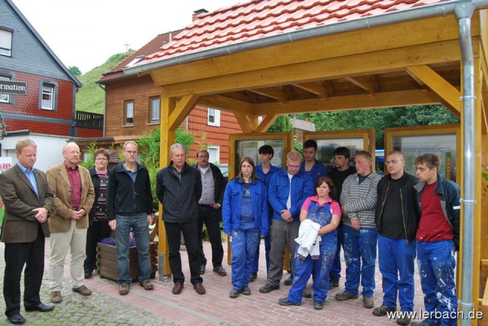 Klaus Becker ging auf die Gerüchteküche während der Bauzeit und das prinzipielle Mißtrauen gegenüber Maßnahmen der Stadt Osterode in Lerbach ein. Er sieht dieses Projekt als einen kleinen Beitrag zur gerade laufenden Dorferneuerung. An die Jugendlichen der Jugendwerkstatt gewandt wünschte er, dass sie sich in vielen Jahren an ihren hoffentlich erfolgreichen Einstieg ins Berufsleben erinnern mögen, wenn sie durch Lerbach hindurchfahren.