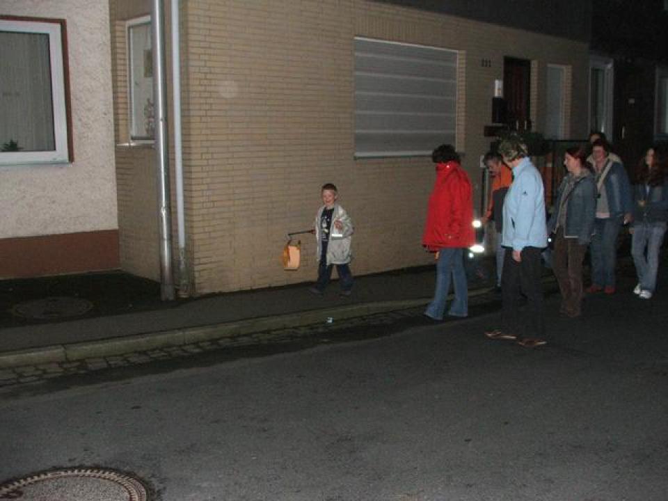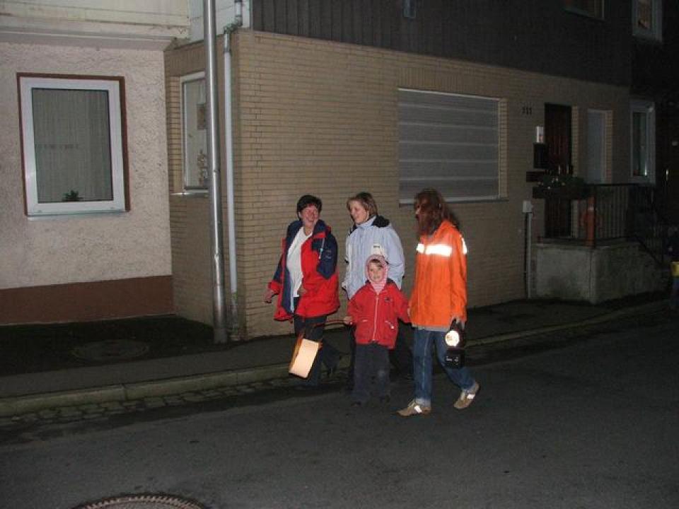 Danach war erst einmal eine Stärkung angesagt: es gab Würstchen mit Salat, den wieder viele fleißige Helfer vorbereitet hatten. Nach dem Essen war es dann dunkel genug, um gesichert von der Feuerwehr einen kleinen Umzug mit Laternen hinuter durch das Mühlental und durch die Friedrich-Ebert-Straße wieder zurück zur Schule zu machen.