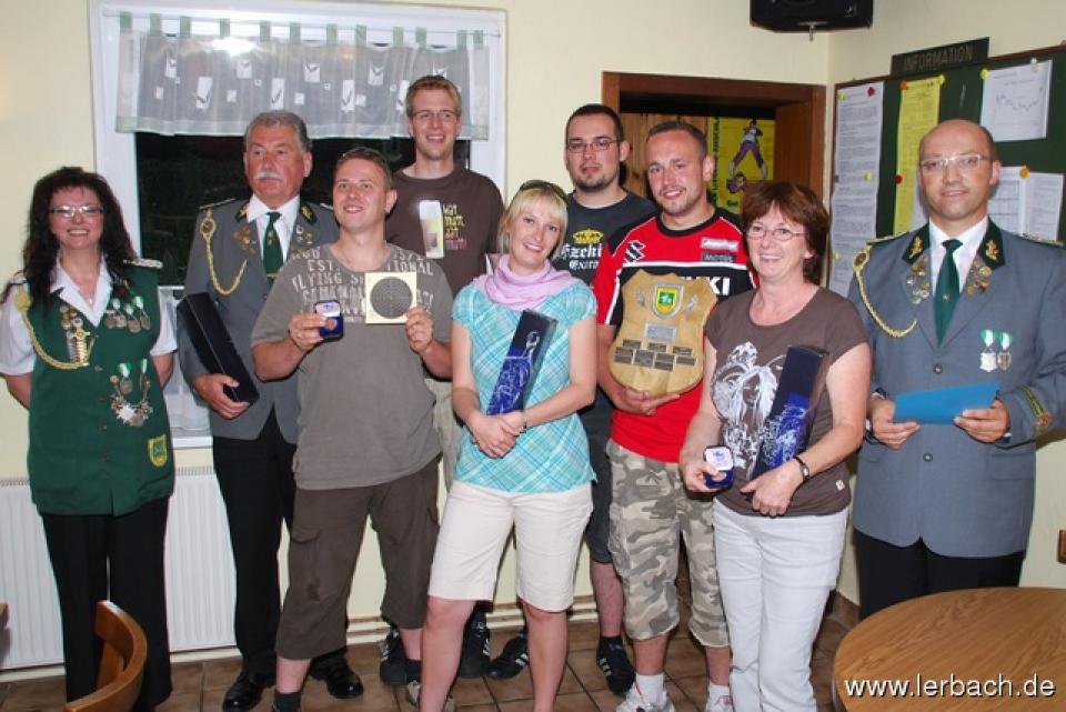 Vereinsschießen der Lerbacher Vereine war ein voller ErfolgInsgesamt 9 Vereine mit 11 Mannschaften sind der Einladung der Schützengesellschaft gefolgt, am Vereinsschießen teilzunehmen. Sieger wurde die Heimatstube mit 238 Ringen (Rolf Kirschstein, Jörg Stein, Bernd Schönfelder, Matthias Herrmann und Marco Gömann) vor der Osterfeuergemeinschaft mit 227 Ringen (Phillippe Gärtner, Alex Viebrans, Jens Schönfelder, Stefanie Hammer und Sascha Klügel) und dem Harzclub mit 213 Ringen (Hans-Gustav Wedemeier, Wolfgang Ude, Karl-Heinz Lücke, Klaus-Werner Kaiser und Ulrike Hammer). Auf den weiteren Plätzen folgten 4). Heimatstube II, 5). SV Lerbach, 6). MTV Lerbach, 7) Feuerwehr, 8) Komöd`chen I, 9). Ortsrat, 10) Skiclub und 11). Komöd`chen II.