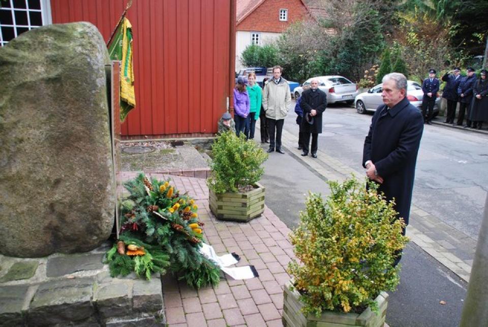 Ortsbürgermeister Frank Koch stellte den Bezug von den Gefallenen des ersten und zweiten Weltkrieges zu den Einsätzen der Bundeswehr in Afghanistan her. Er nannte den Einsatz Krieg und hob die notwendige Rückendeckung aus der deutschen Bevölkerung für die Soldaten hervor. Wenn dann aber ein Soldat getötet wird, ist es für die Angehörigen heute genauso tragisch wie es in den beiden Weltkriegen gewesen ist.