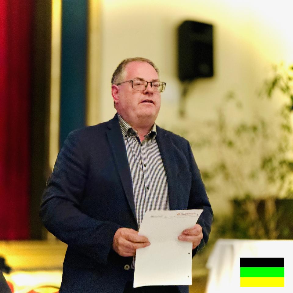 Der Vorsitzende Eckhard Schmidt stellte die Realgemeinde und deren Aufgaben kurz vor und berichtete u.a. über den Stand der Beweidung. Ehrenortsbürgermeister und Harzklub-Vorsitzender Frank Koch verwies auf die Erfolge früherer Anstrengungen zur Pflege der Bergwiesen und - auch anhand einer Präsentation mit Vergleichsbildern - auf die Notwendigkeit, die Arbeiten nachhaltig fortzusetzen.