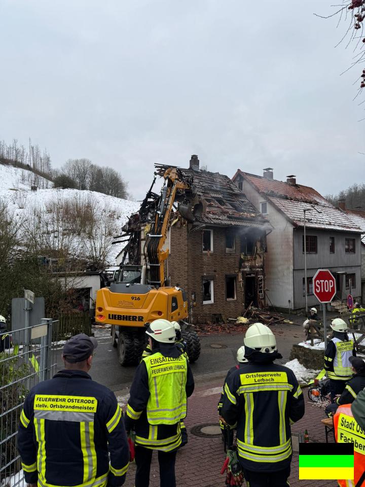 Am 25.11.2025 gegen 02:30 Uhr wurde die Feuerwehr alarmiert, weil im Oberdorf ein Wohnhaus in Brand geraten war. Beim Eintreffen der Wehren stand das Haus im Vollbrand und das Feuer hatte auf ein nebenstehendes Gebäude übergegriffen. Insgesamt 200 Einsatzkräfte von sieben Feuerwehren und weiterer Rettungsdienste waren im Einsatz um das Feuer unter Kontrolle zu bekommen und das Nachbargebäude zu halten.