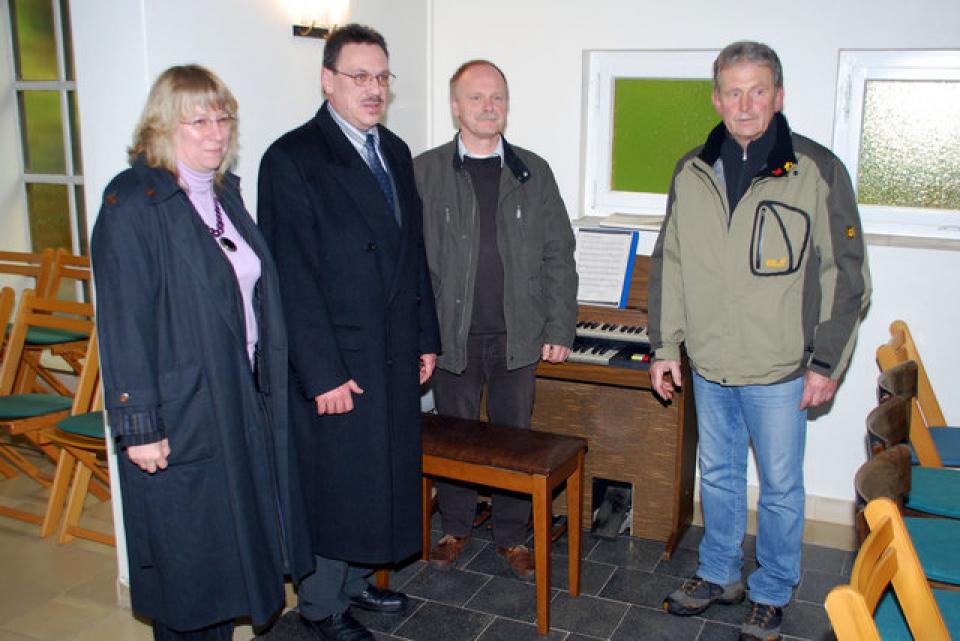 Zur offiziellen Übergabe fanden sich heute Vormittag Ortsbürgermeister Frank Koch, Ulrike Lemme und Lutz Leonhardt von der Stadt Osterode und Michael Stein, der viele Jahre als Organist in Lerbach tätig war, ein. Koch dankte Heinrich Niehus im Namen der Gemeinde Lerbach für die Spende. Zum Abschluss brachte dann Michael Stein noch eine kleine Spielprobe auf der neuen Orgel zu Gehör, sodass sich die Anwesenden vom Klang des neuen Instruments sofort überzeugen konnten.