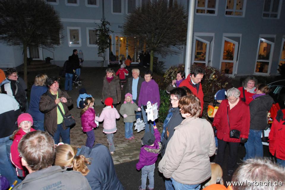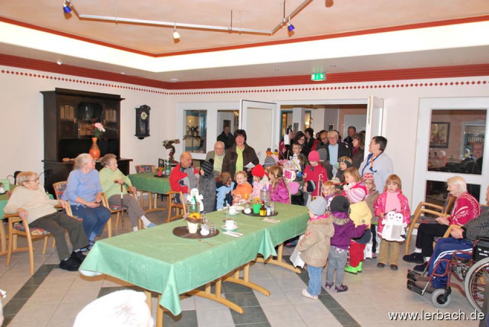 Kurz nach der Umstellung auf die Winterzeit nutzte der Kindergarten Kunterbunt den dunklen Abend für seinen jährlichen Laternenumzug. Vor dem Spaziergang durch die Dunkelheit ging es aber erst einmal in den Seniorenwohnsitz Bacchus Ruh.