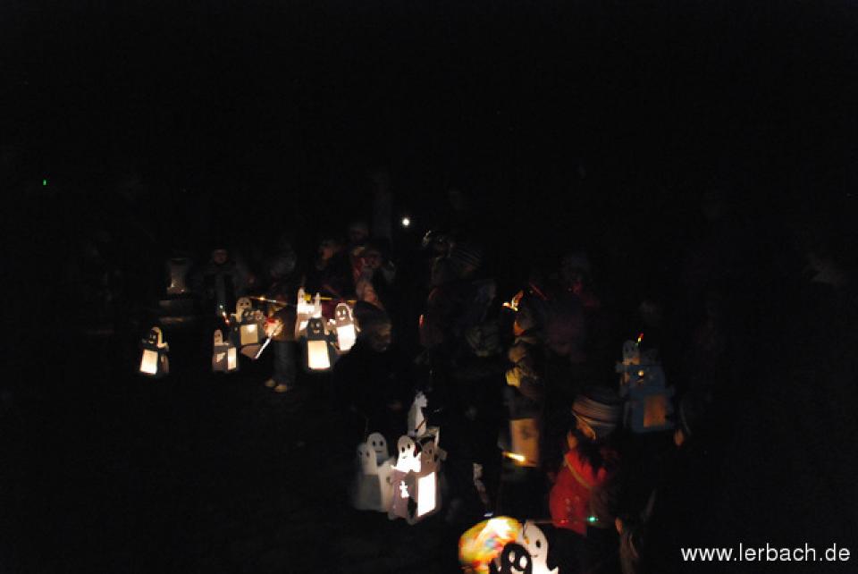 Dort sangen die Kinder den Bewohnern einige Laterne-Lieder vor und wurden dafür mit einem herzlichen Dank und ein paar Süssigkeiten belohnt. Danach ging es - abgesichert von der Feuerwehr - zuerst die Friedrich-Ebert-Straße hinunter und dann hinauf zum Schwarzenberg, wo in der Schule ein gemeinsames Abendessen wartete. Vorher wurde allerdings unten am Schwarzenberg noch einmal vor dem alten Schützenhaus angehalten, um ein paar Lieder zusammen mit den Eltern zu singen.