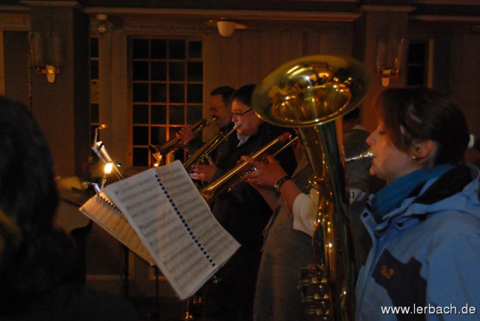 Dann ging es hinunter zur Kirche, wo bereits der Posaunenchor wartete, um gemeinsam mit Kindern, Eltern und Lehrern einige Lieder zu singen.