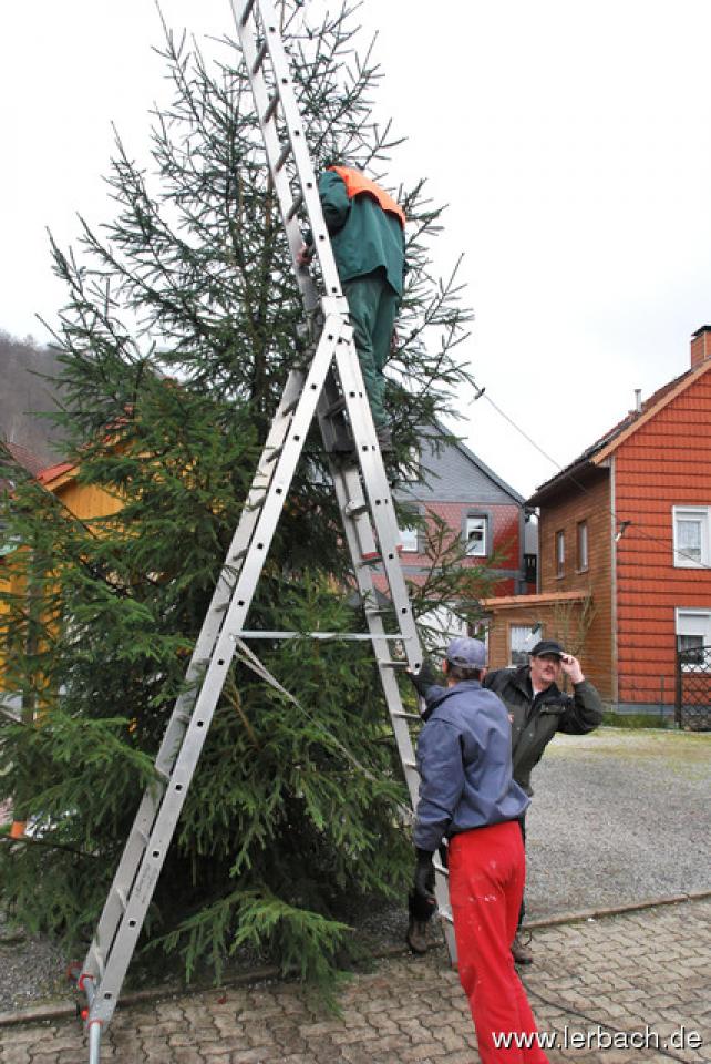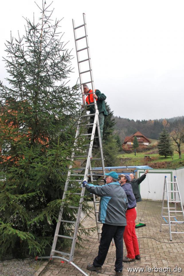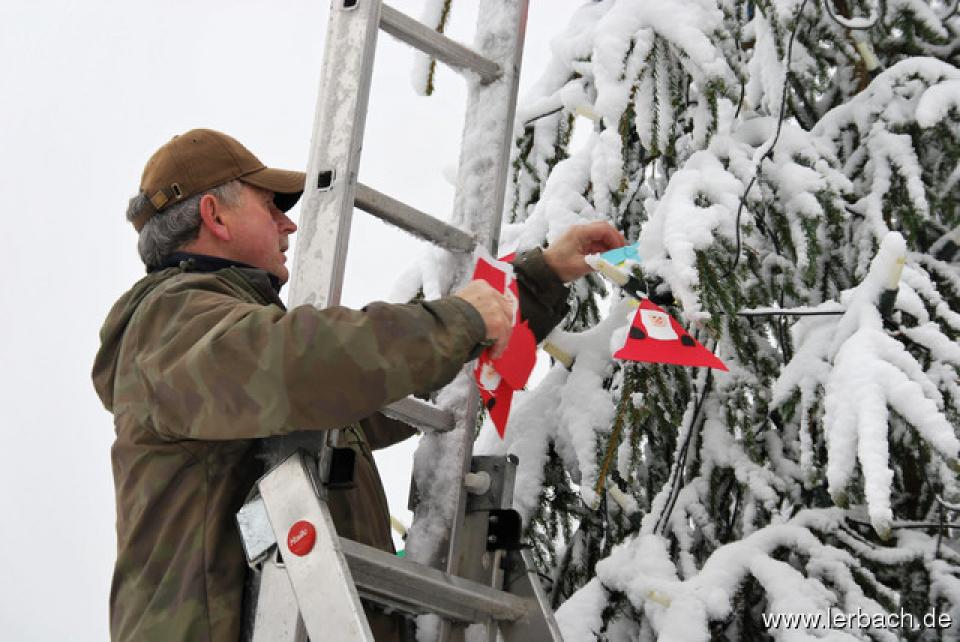 Der erste Advent steht vor der Tür und die dunkle Jahreszeit verlangt nach stimmungsvoller Beleuchtung. Also wurde an der Infotafel über dem Hotel Sauerbrey wieder ein Weinhachtsbaum aufgestellt, der heute geschmückt wurde.