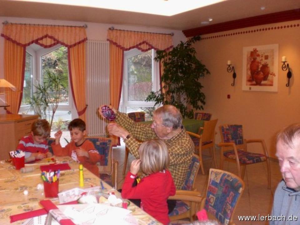 Die Schüler der Grundschule Lerbach und wenige Tage später auch die Kinder des Lerbacher Kindergartens „Kunterbunt“, erfreuten die Bewohner mit schönen, bunten Laternen und vorgetragenen Liedern. Mit einigen Kindern des Lerbacher Kindergartens wurde in diesem Monat eine Bastelstunde organisiert, in der sie gemeinsam mit den Bewohnern kleine Weihnachtsbasteleien herstellten.