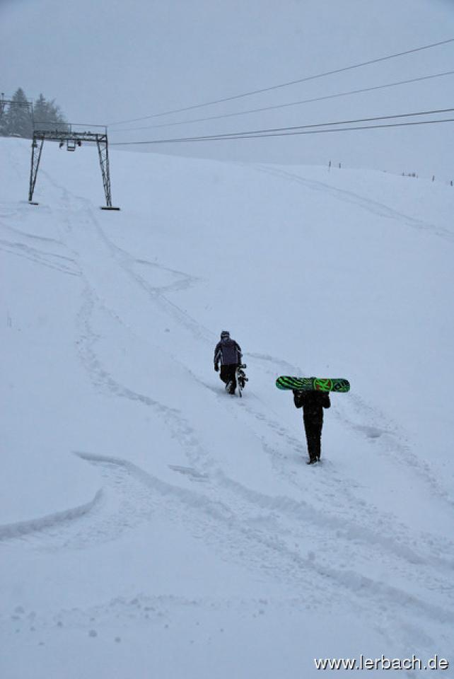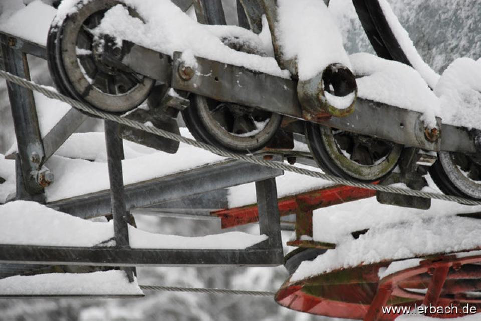 Der Wintereinbruch kommt sehr früh und der Lerbacher Skiclub hat gerade erst umfangreiche Wartungsarbeiten durchgeführt, die noch nicht komplett abgeschlossen sind. Bevor die Gondeln angehängt werden können, muss das neue Seil nach Vorschrift des TÜV, der die Anlage am vergangenen Samstag abgenommen hat, insgesamt rund 10 Stunden leer rotieren. Erst danach ist der Betrieb mit Fahrgästen erlaubt.