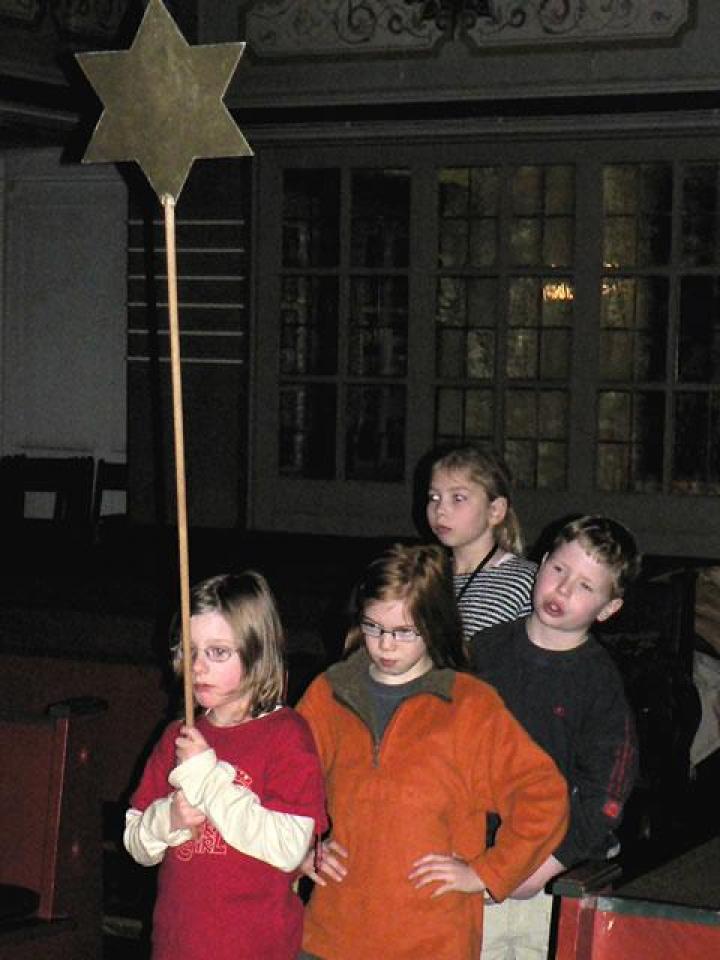 Zwischen den Spielpassagen singen die Kinder passende Weihnachtslieder, die bei der Aufführung am Heiligabend bestimmt die Gemeinde zum Mitsingen animieren werden.