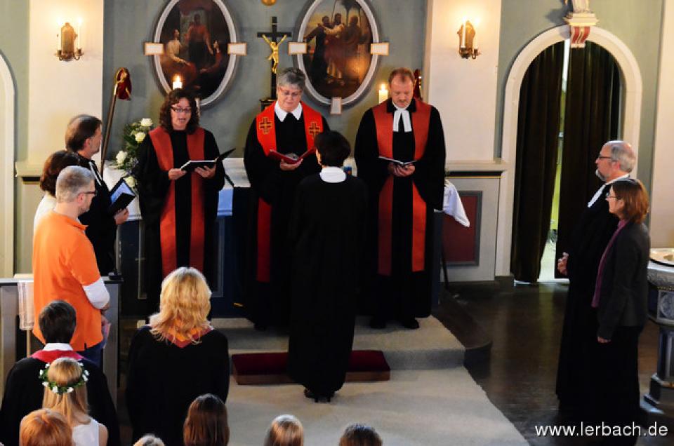 Festgottesdienst in LerbachIn einer vollen Kirche und mit viel Musik wurde Gisela Scheerschmidt heute als neue Lektorin in ihr Amt eingeführt. Dazu hatte sie seit letztem Jahr die Lektorenausbildung durchlaufen. Ab sofort darf sie Andachten und Gottesdienste selbständig halten, auch wenn Amtshandlungen wie Taufen und Beerdigungen weiterhin den Pastoren vorbehalten bleiben.
