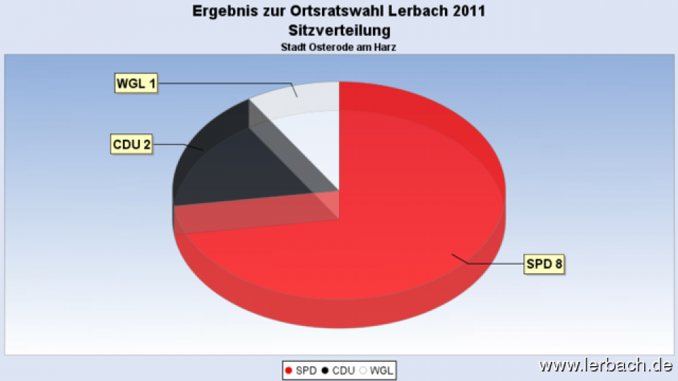 Im Wahlergebnis konnte die SPD um einen Sitz zu Lasten der CDU zulegen. So stellen die Sozialdemokraten nun 8 der elf Sitze, 2 Sitze gehen an die CDU und ein Sitz an die WGL. In den nächsten Ortsrat ziehen ein: