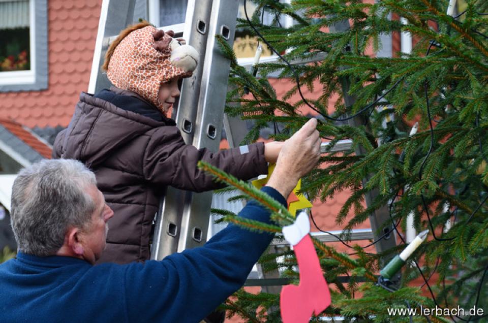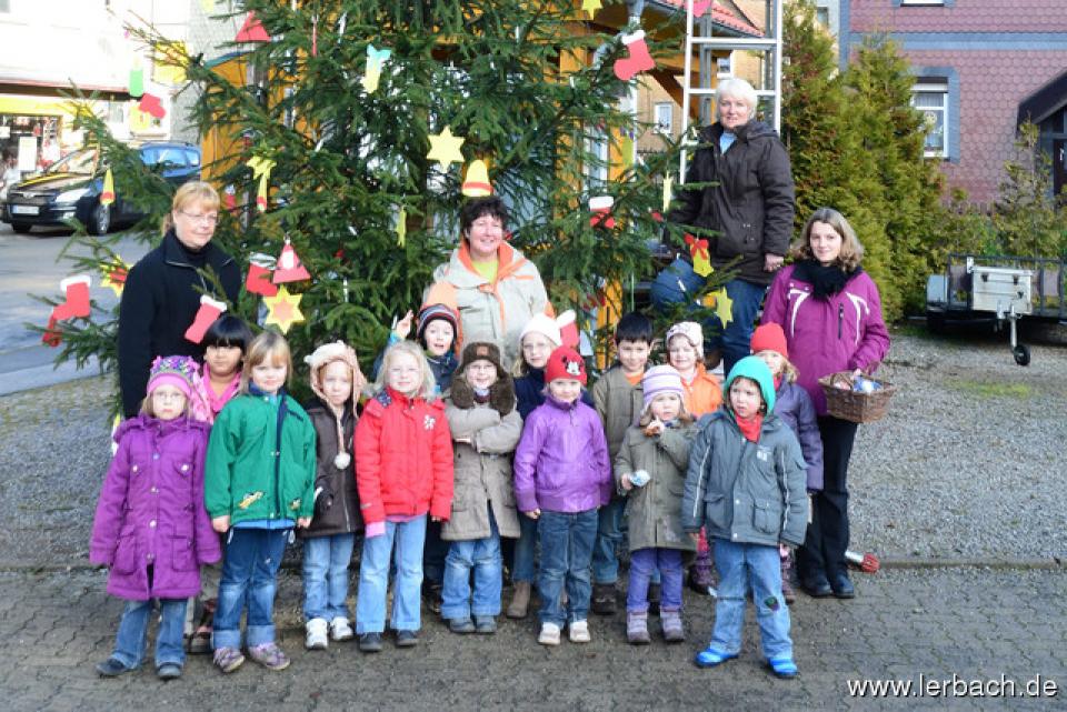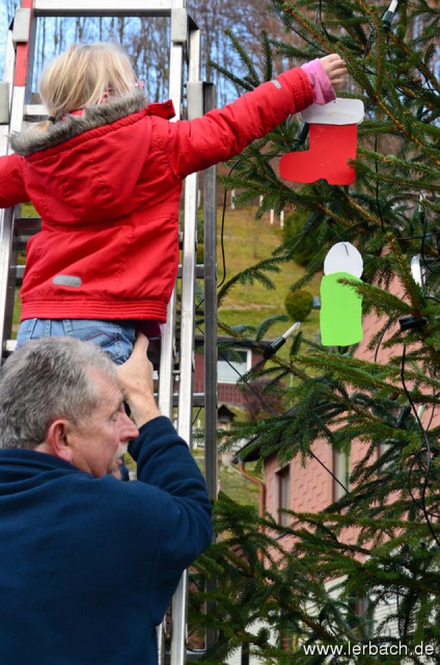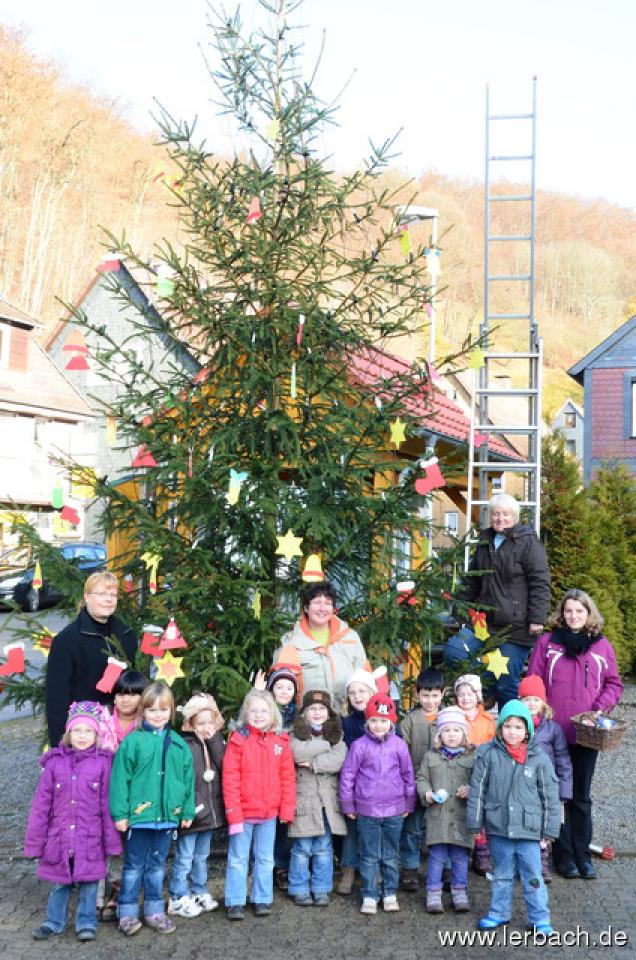 Alle Jahre wieder wird gegenüber neben der Infotafel oberhalb des Hotels Sauerbrey der Weihnachtsbaum geschmückt. Nachdem Mitglieder des Ortsrats und Helfer des Harzklubs am vergangenen Samstag den Baum aufgestellt und die Lichterkette installiert hatten, kamen am Mittwochmorgen die Kinder des Kindergartens und hängten ihren Baumschmuck an.