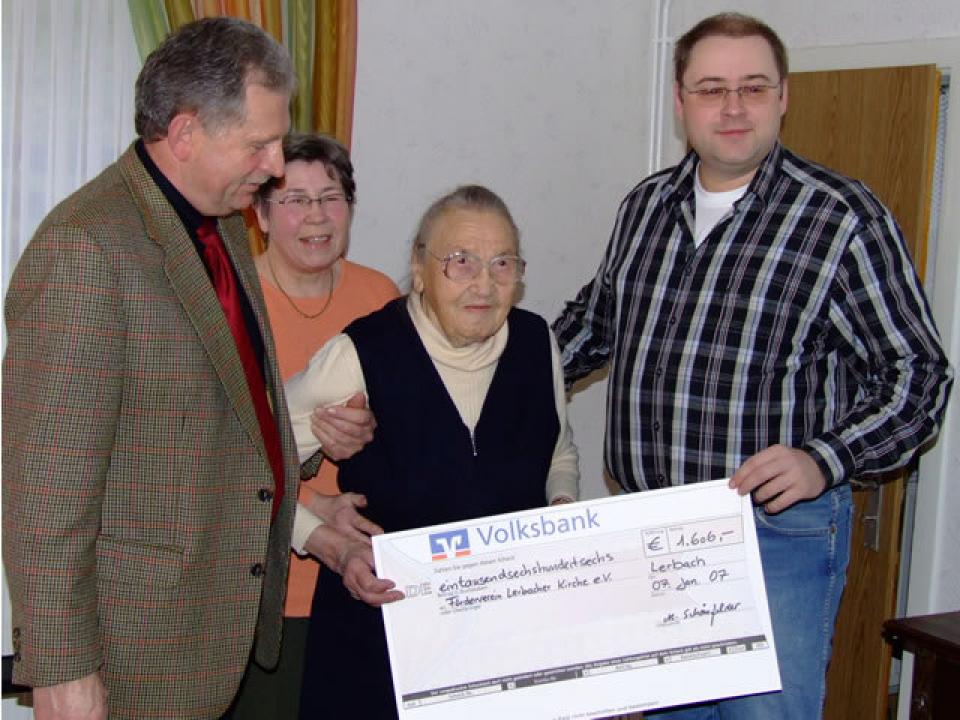 v.l.n.r.: Frank Koch (2. Vorsitzender des Fördervereins), Elfriede Nothdurft (Tochter von Minna Schönfelder), Minna Schönfelder, Jörg Hüddersen (1. Vorsitzender des Fördervereins)