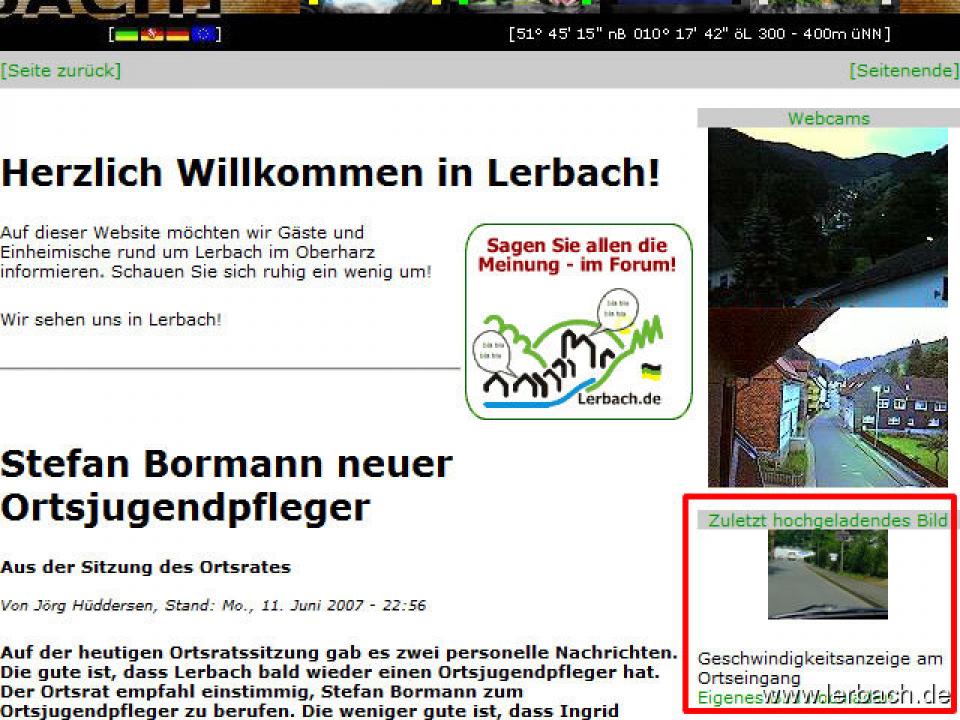 Das jeweils letzte hochgeladene Bild wird sofort auf der Startseite von lerbach.de angezeigt.