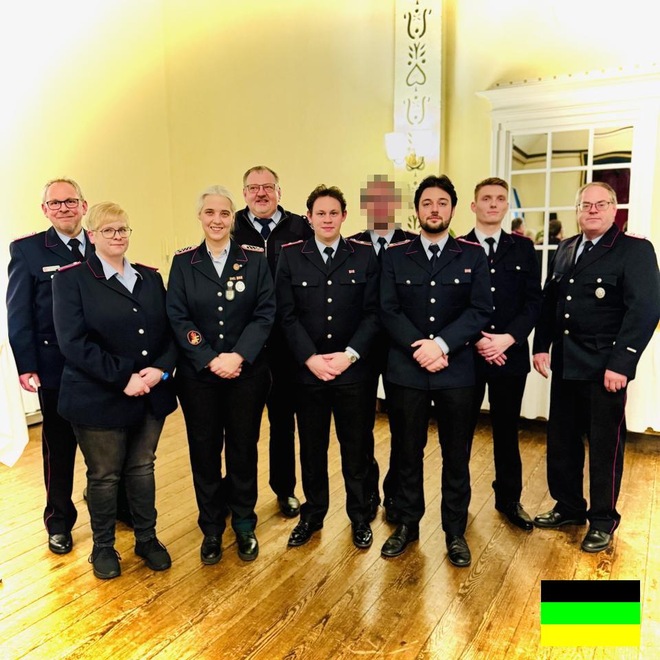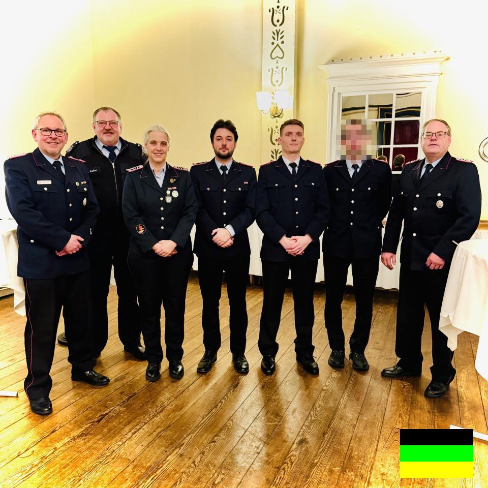 Zum Abschluss der Versammlung standen drei Wahlen an. Wie erwähnt wurde der neue Jugendfeuerwehrwart Marvin Kranitz einstimmig gewählt. Zum Nachfolger des langjährigen Kassenwart Ehrenortsbrandmeister Wilfried Kratsch wurde sein Enkel Felix Kratsch bestimmt. Einstimmig wiedergewählt wurde die Schriftführerin Elena Just, bevor Andreas Kratsch die Versammlung gegen 22:00 Uhr schließen konnte. Nach dem Gruppenbild gingen die aktiven Mitglieder zum geselligen Teil des Abends über.
