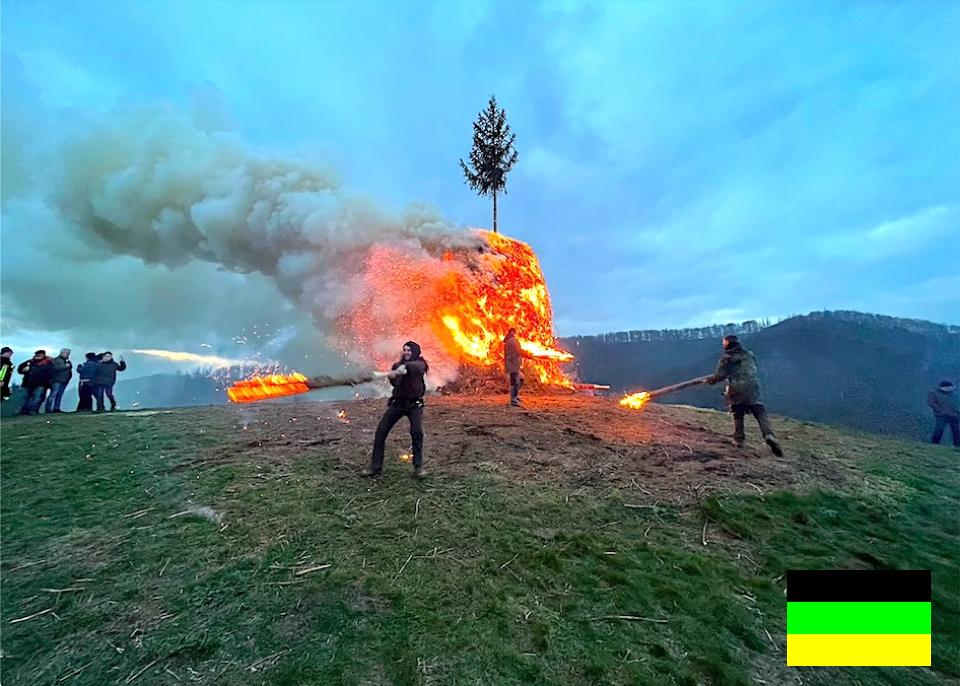 Das Osterfeuer im Hexenzipfel wird abgebrannt.